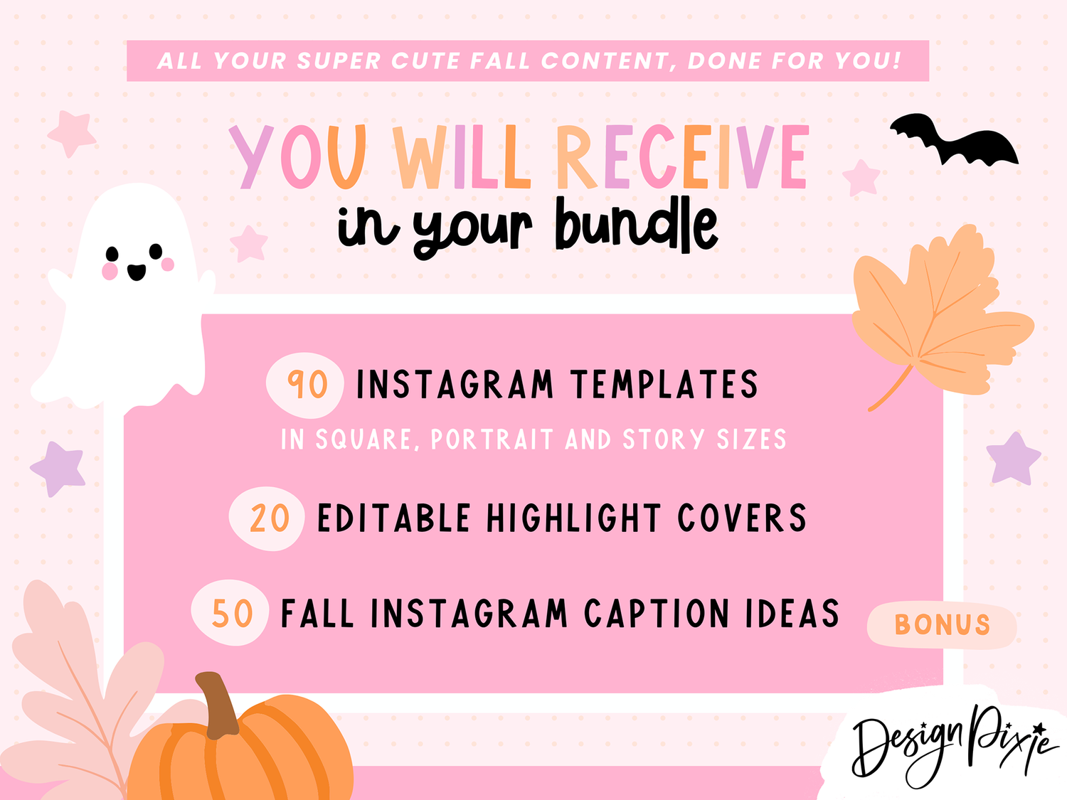 Plus, you’ll get 50 bonus Instagram caption ideas tailored for fall and Halloween to help skyrocket your social media engagement with likes, shares, and comments!