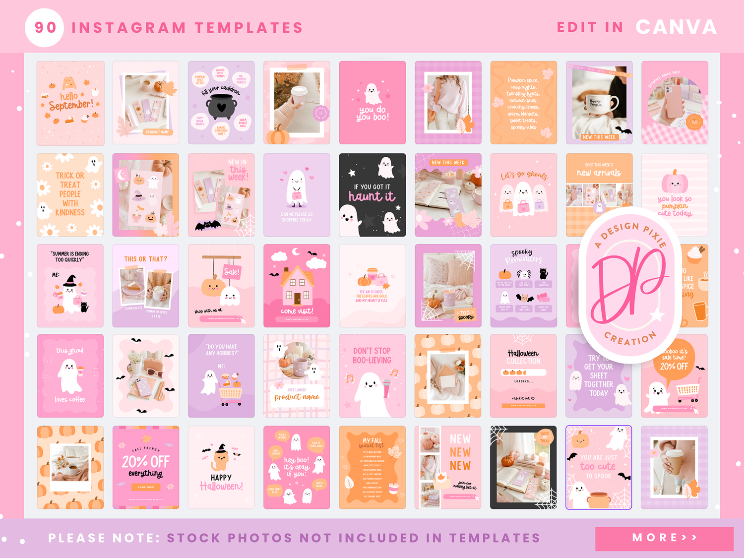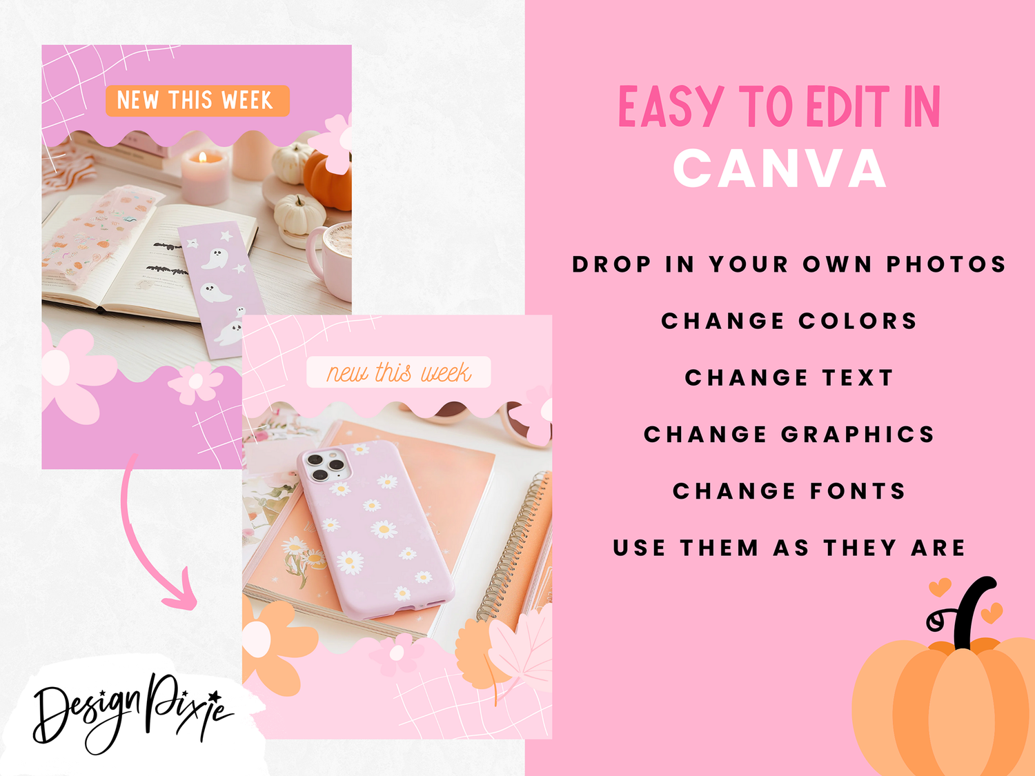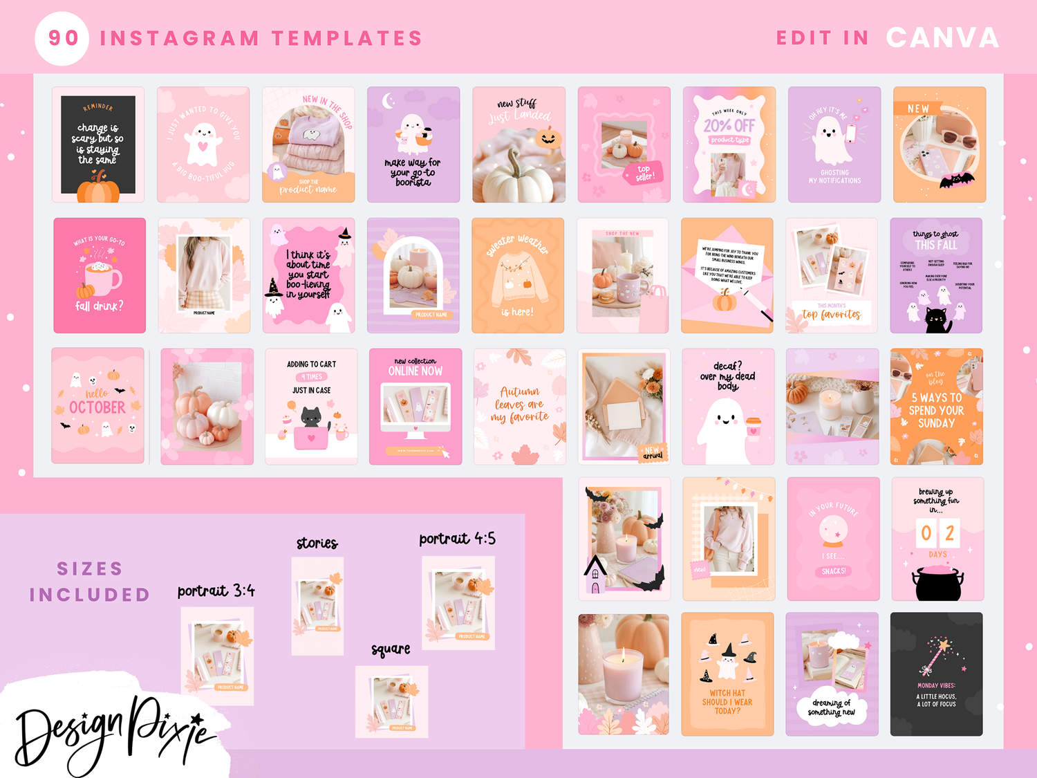 Get ready to glow up your Instagram this spooky season with our Cute Spooky Halloween Instagram Templates Bundle! Perfect for small businesses and creatives who want to capture all the cozy fall vibes and playful Halloween spirit.