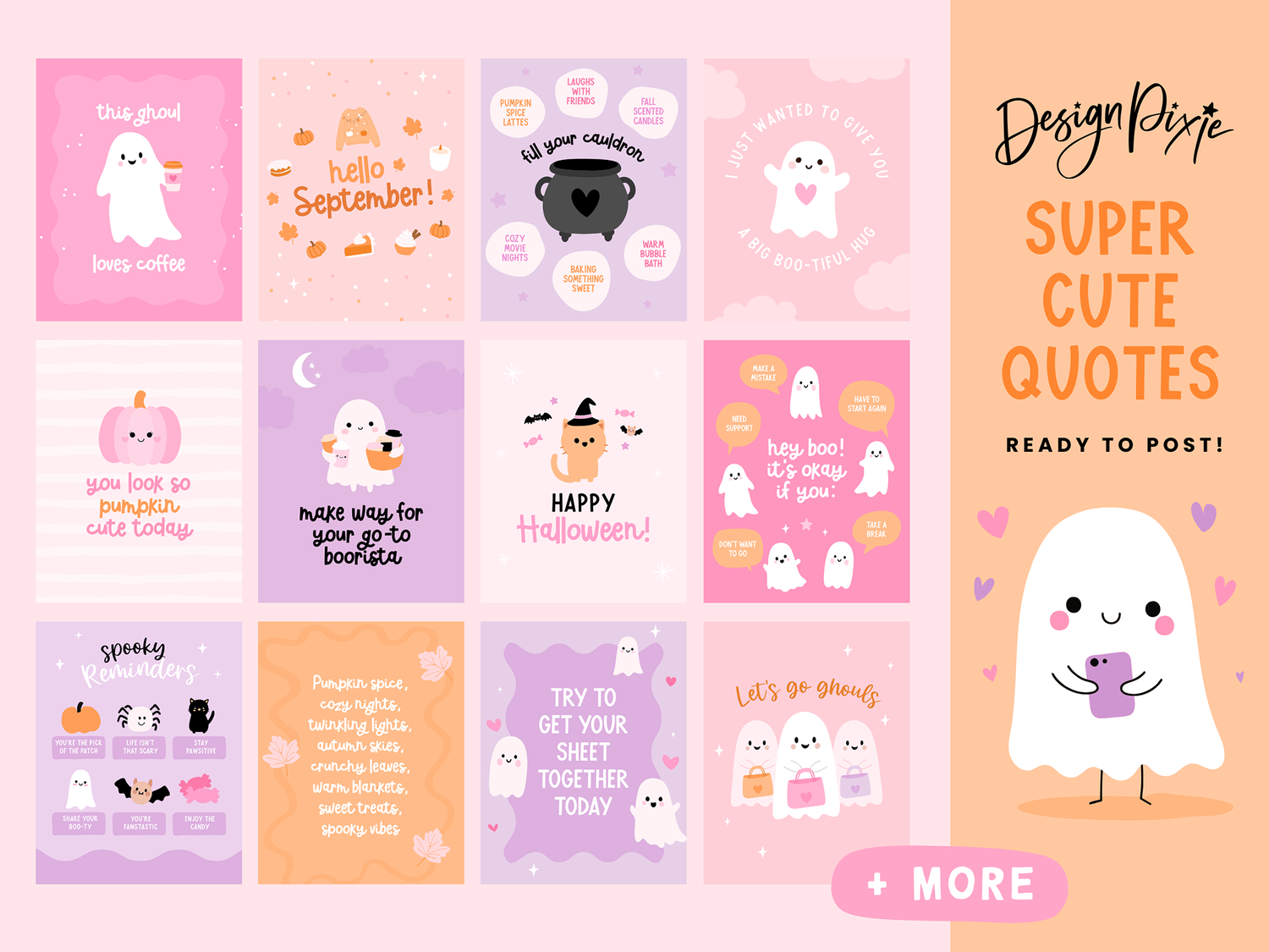 Instagram posts with cute illustrations of ghosts, pumpkins, fall leaves and more
