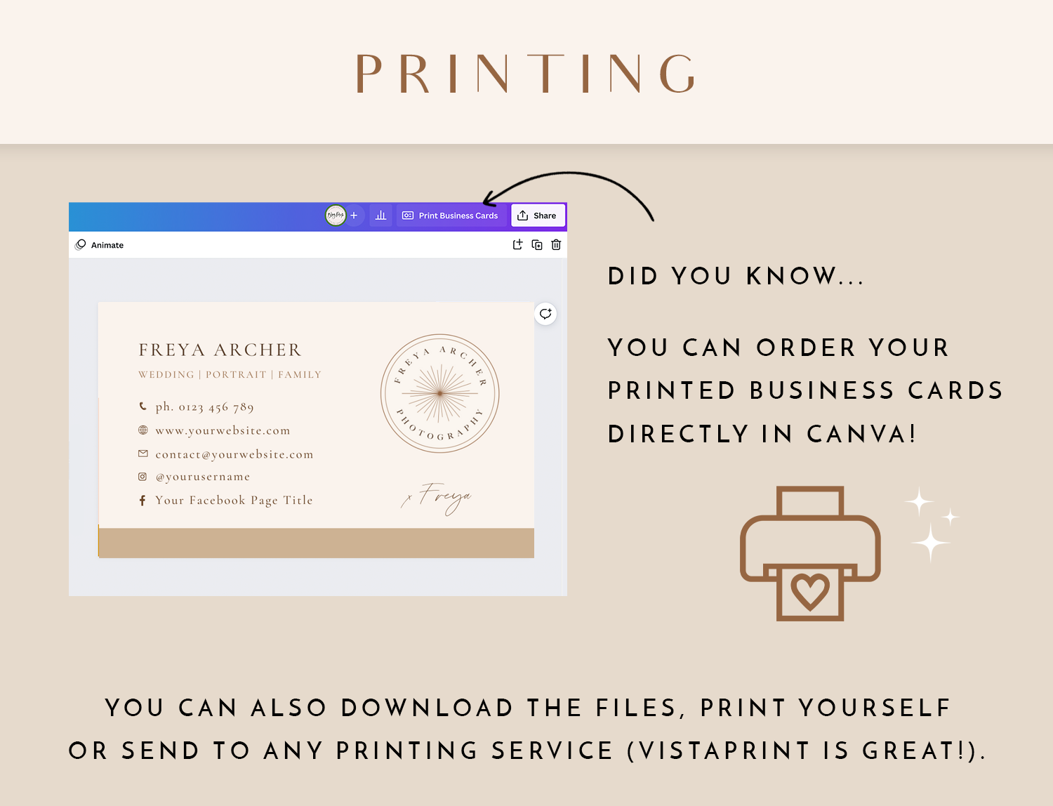 2. You will download a PDF file which has a button link on it – this link will take you to Canva where the template will open up and be ready to edit!