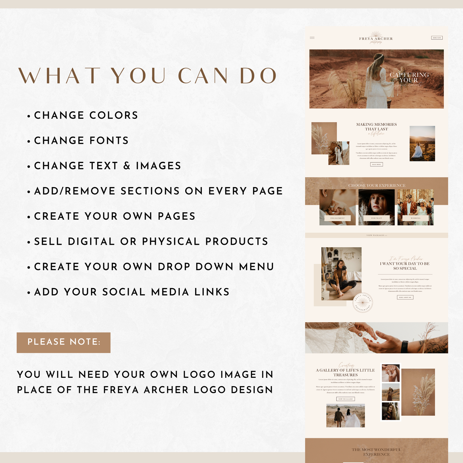 The Freya Archer Wix Template is a beautifully crafted, fully customizable Wix website template designed specifically for photographers who want to showcase their work in a modern and professional way.