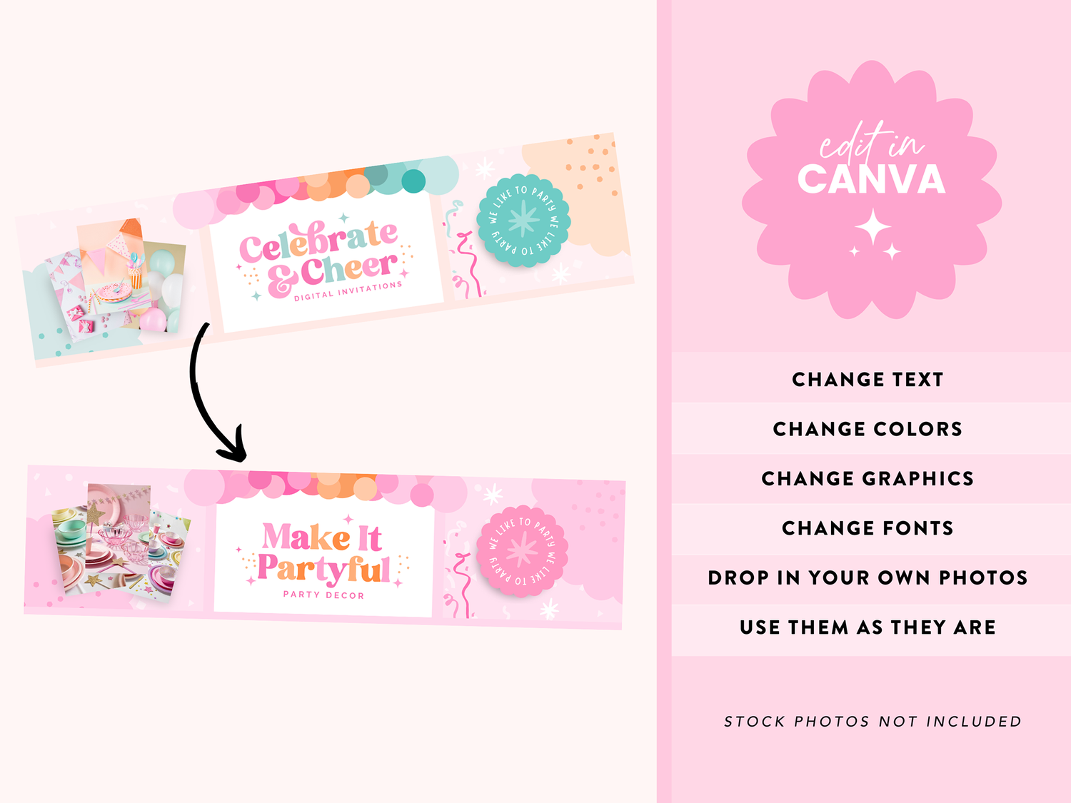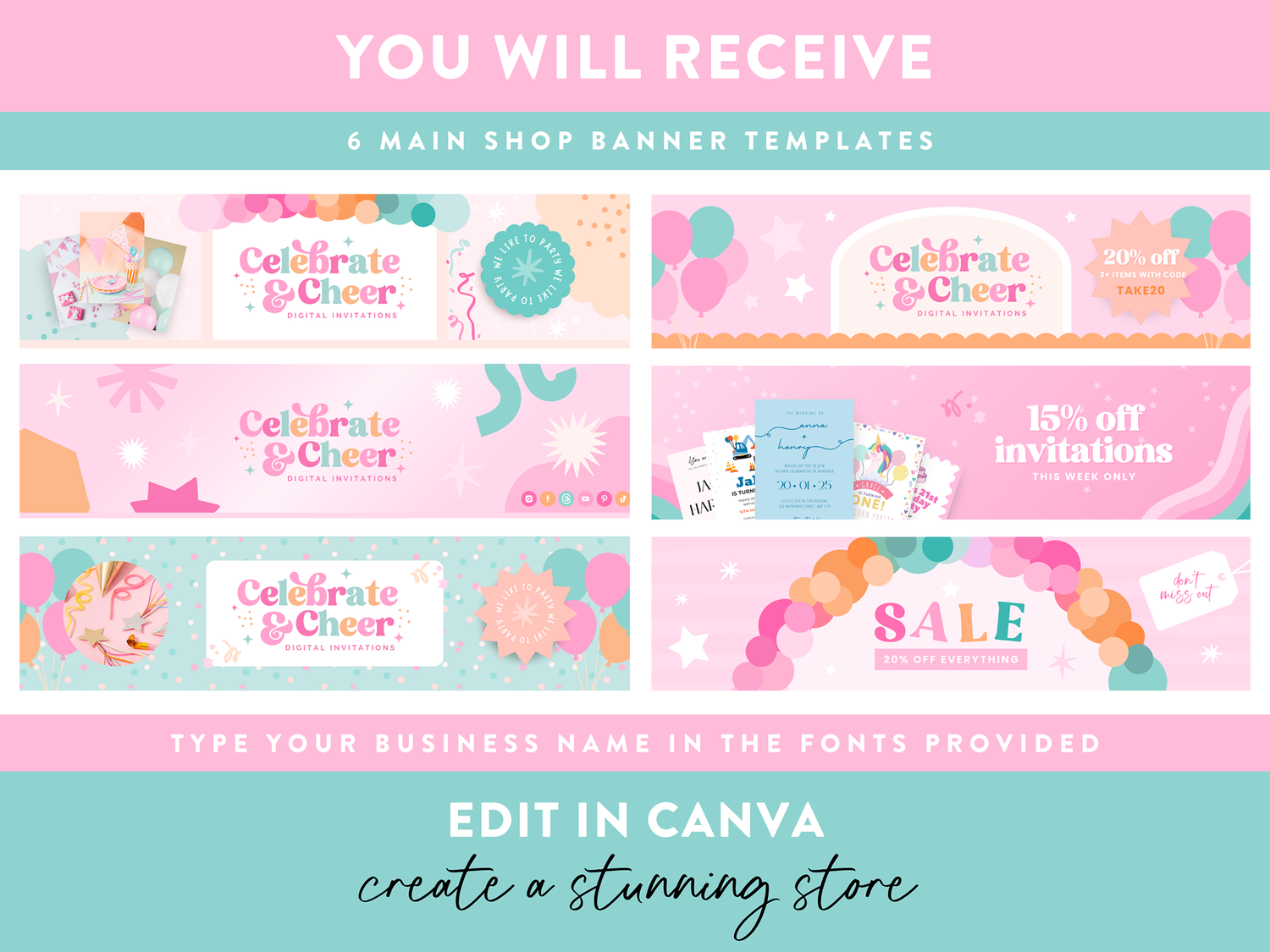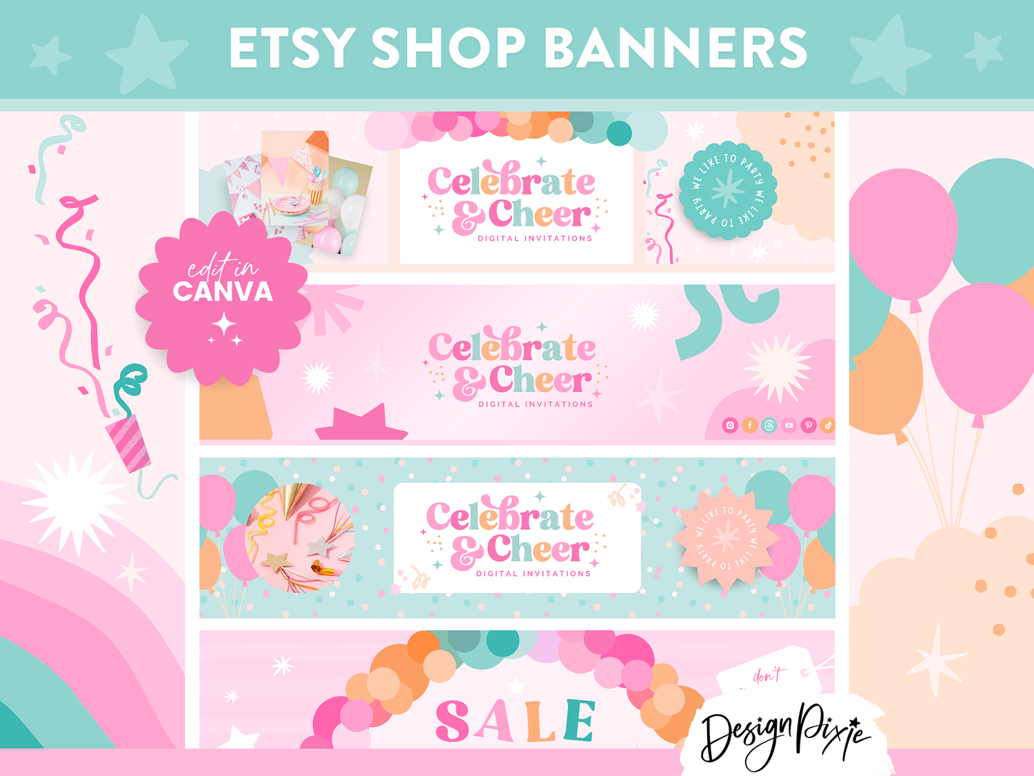 Download your templates instantly, edit them in Canva, and upload them to your Etsy shop for a professional, cohesive, and scroll-stopping storefront that reflects your party brand’s energy!
