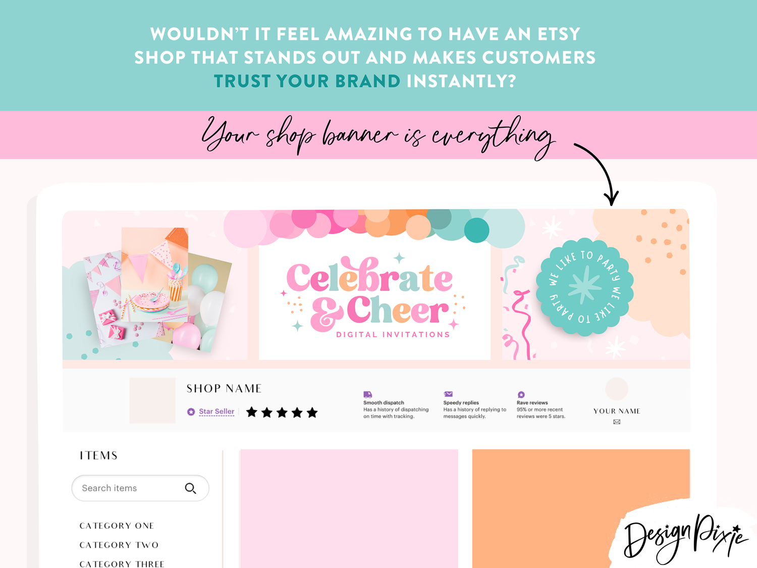 - Any party business looking for a bright and fun Etsy shop makeover