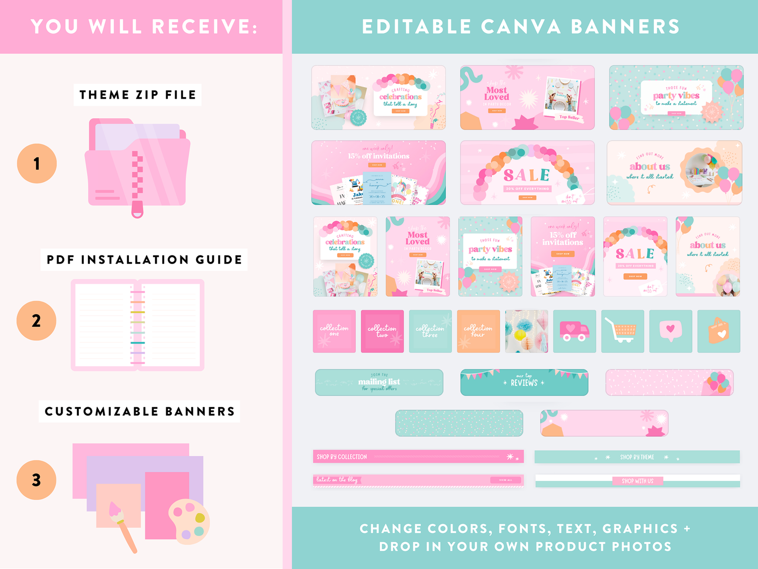 - PDF with links to the Canva Templates to edit your Shopify Banners