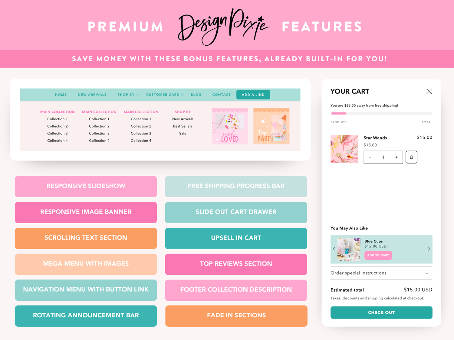 DESIGN PIXIE PREMIUM THEMES INCLUDE: