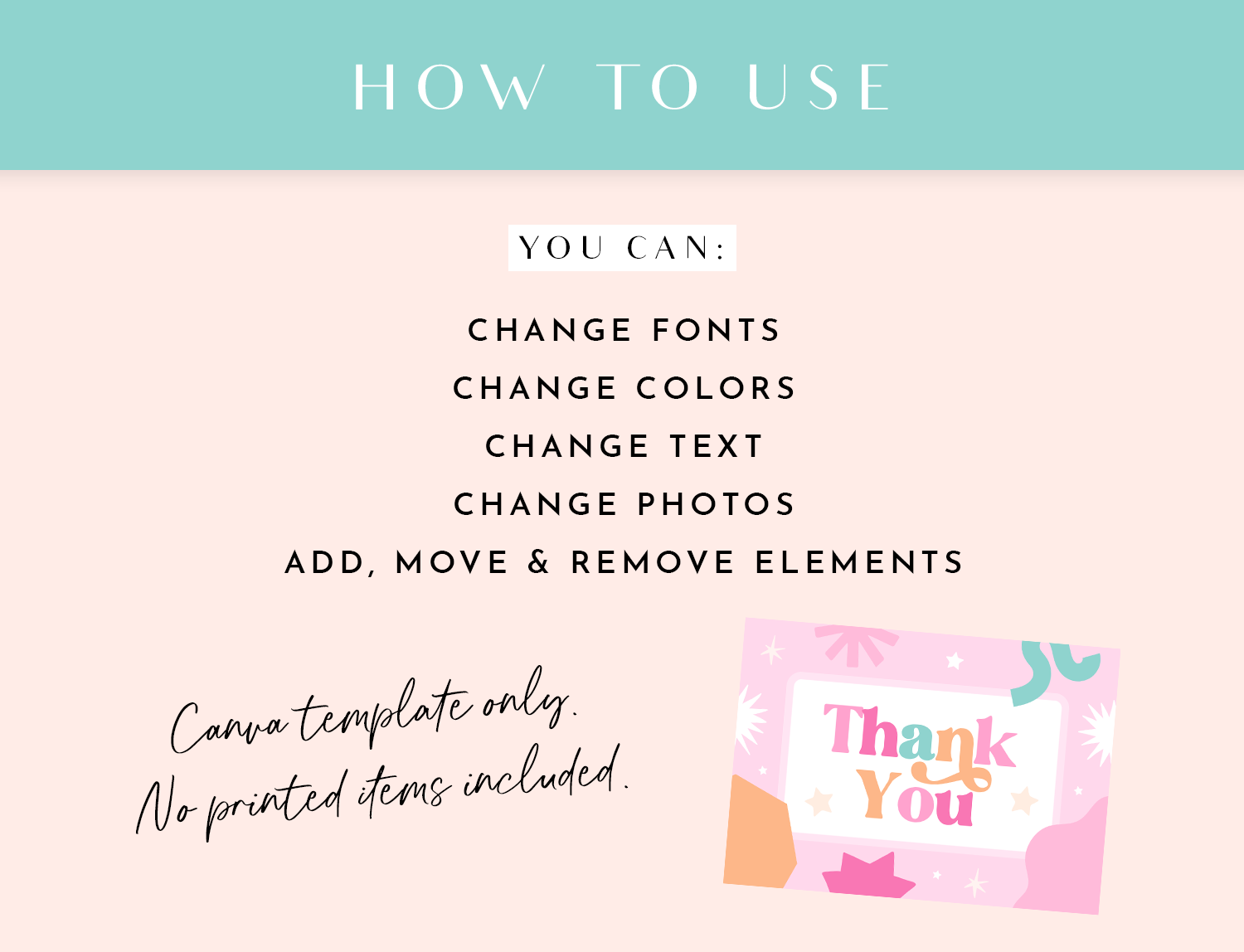 This item is a digital template ONLY! No printed items included - you will need to print/order your thank you cards.