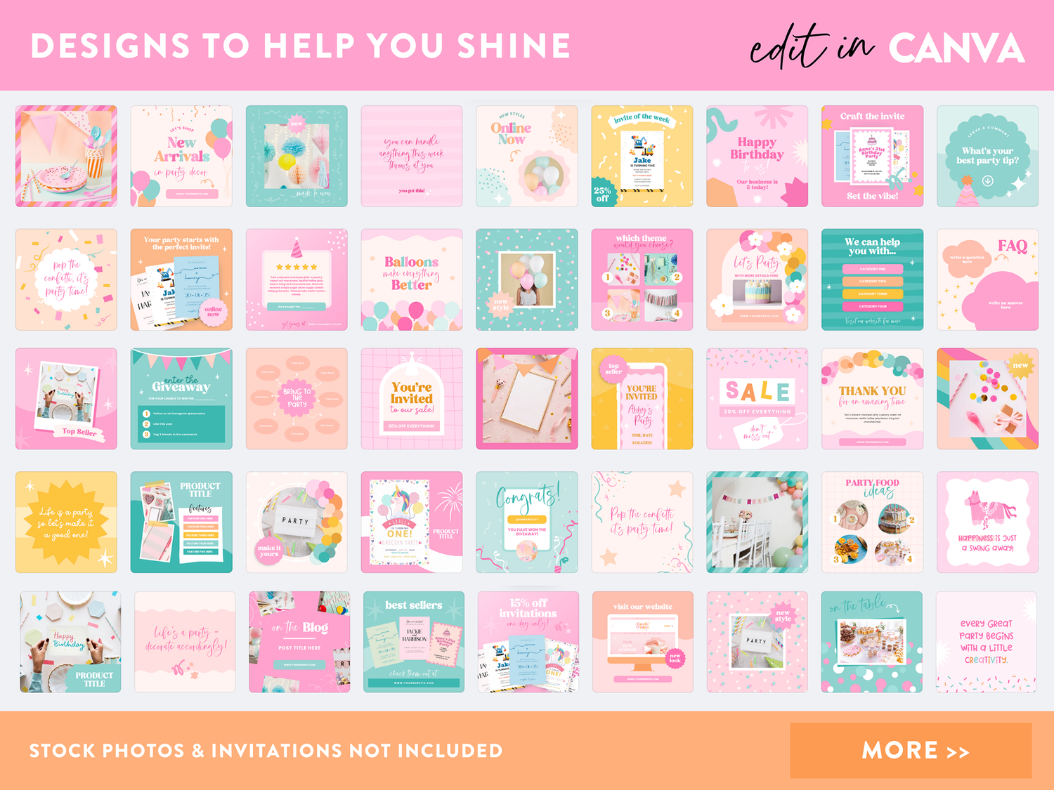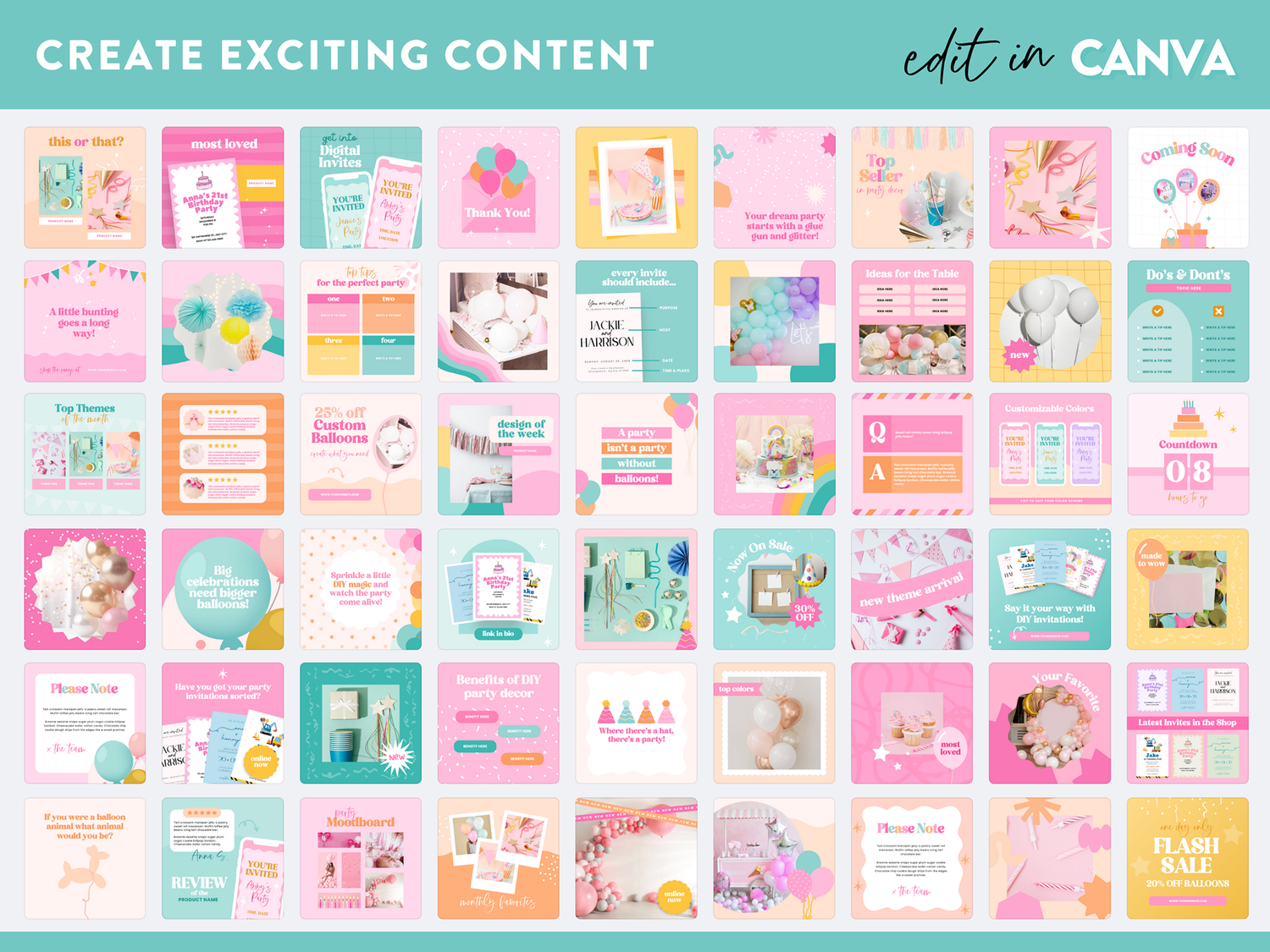 Packed with party essentials like balloons, streamers, confetti, and sprinkles, each template radiates joy and creativity. Whether you’re sharing new products, running a sale, or giving event inspiration, this collection helps you stand out while saving time on design.