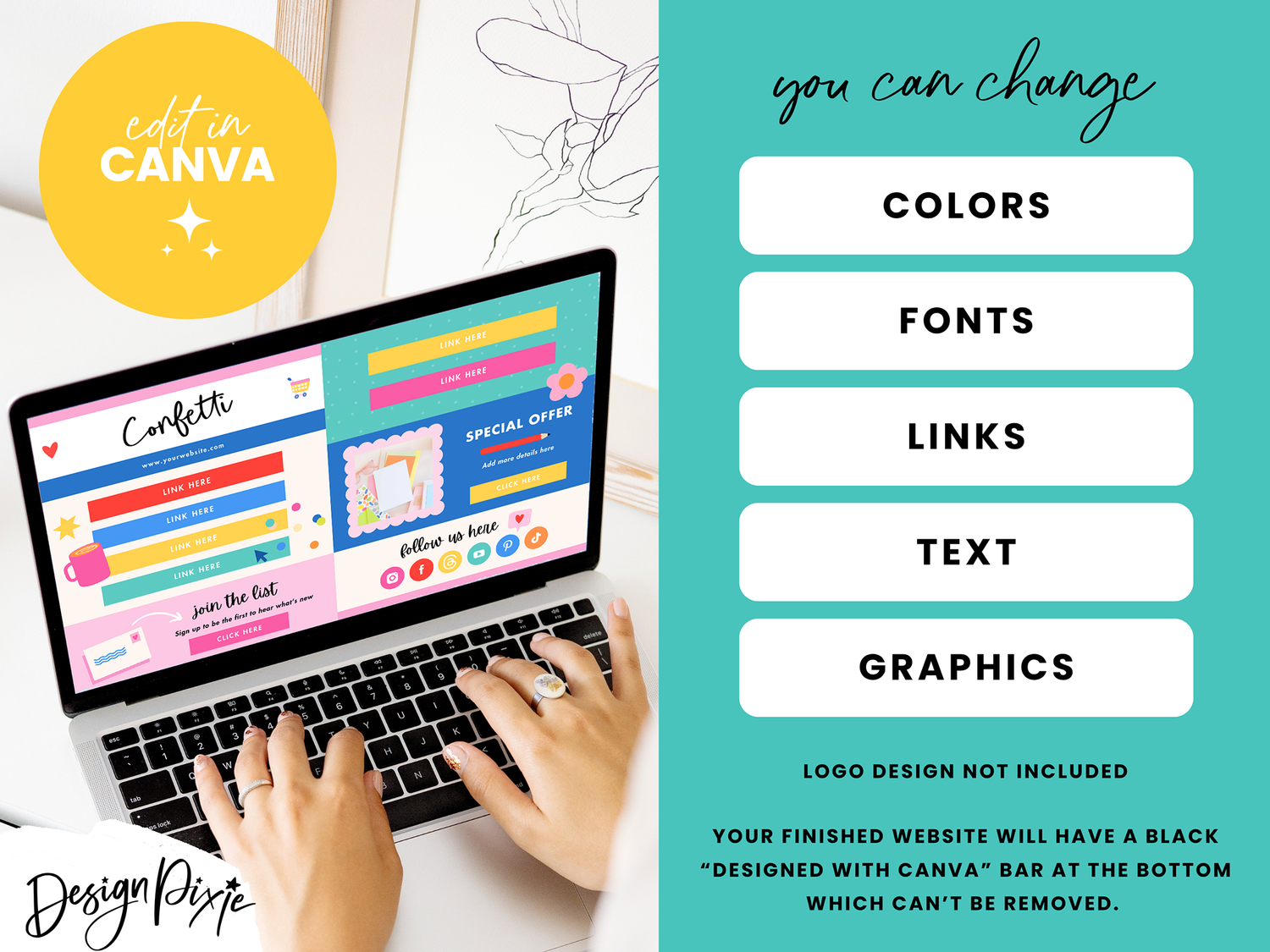 With bold rainbow colors, cute graphics, and fun Confetti vibes, it’s totally customizable in Canva. Change the fonts, colors, images, and layout to match your brand - no tech skills needed.