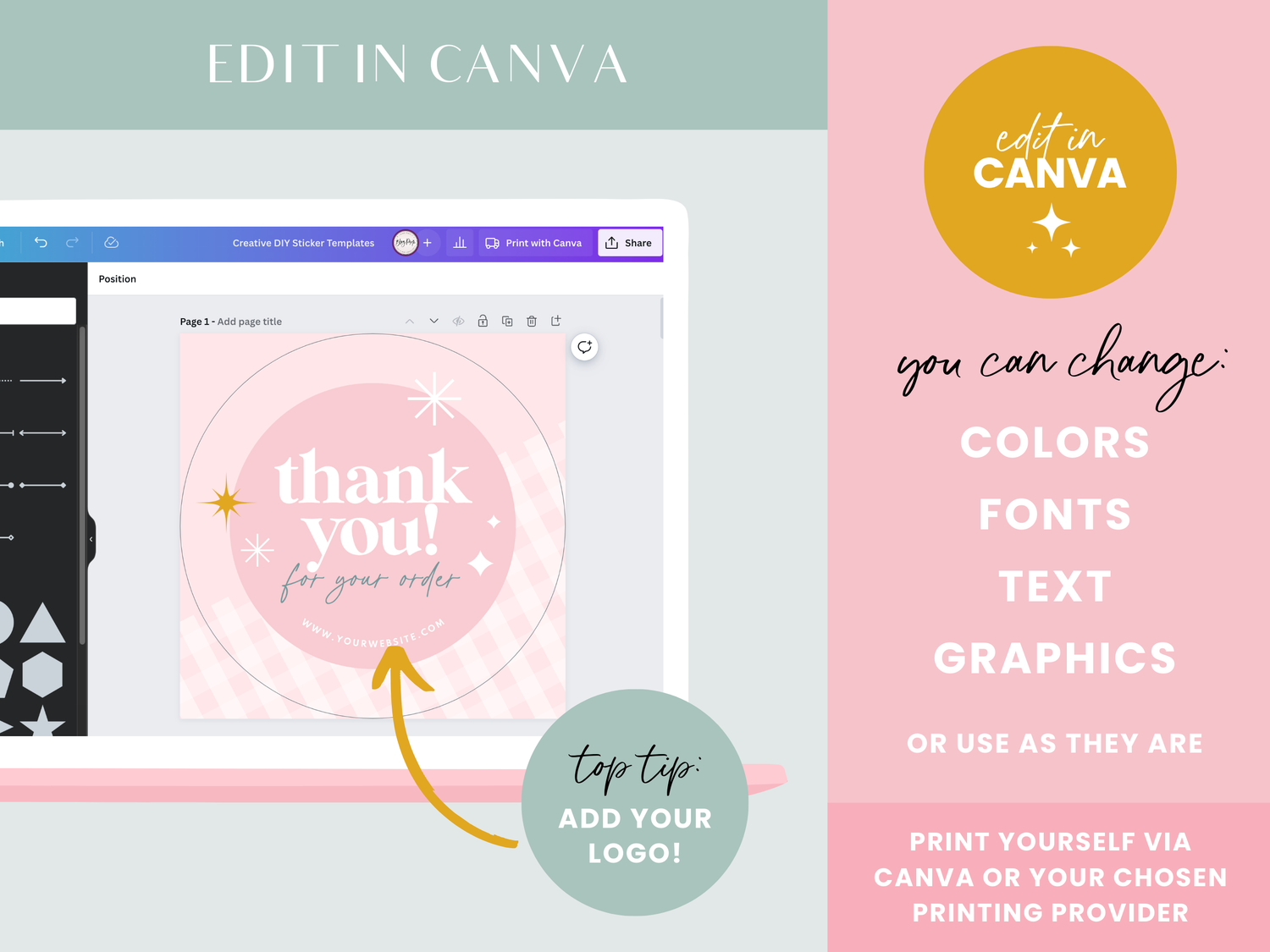 - Canva allows you to print one sticker design per sheet of stickers (so you can pick one design from the templates and have 12,24,48 etc of that one sticker on a sheet.