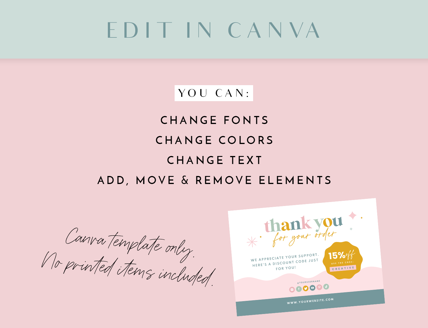 This item is a digital template ONLY! No printed items included – you will need to print/order your thank you cards.