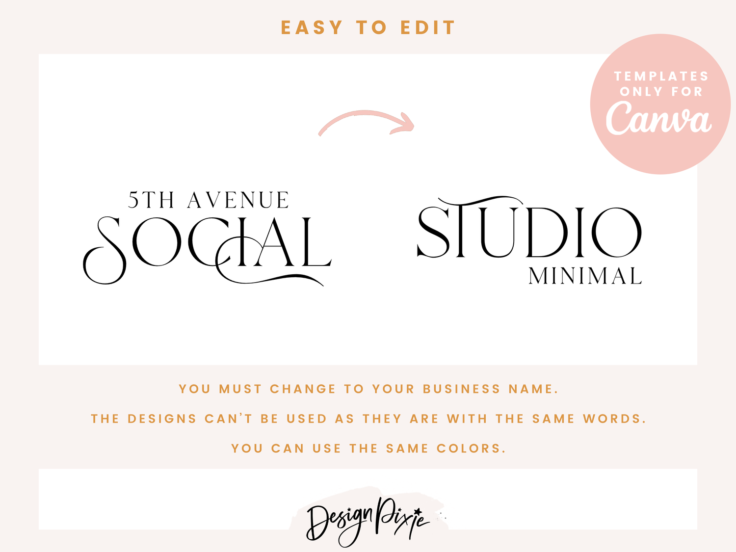 You can use these templates to create your own logo. You must replace the words with your business name before downloading. You can use your new logo for all of your website, branding, social media and marketing.