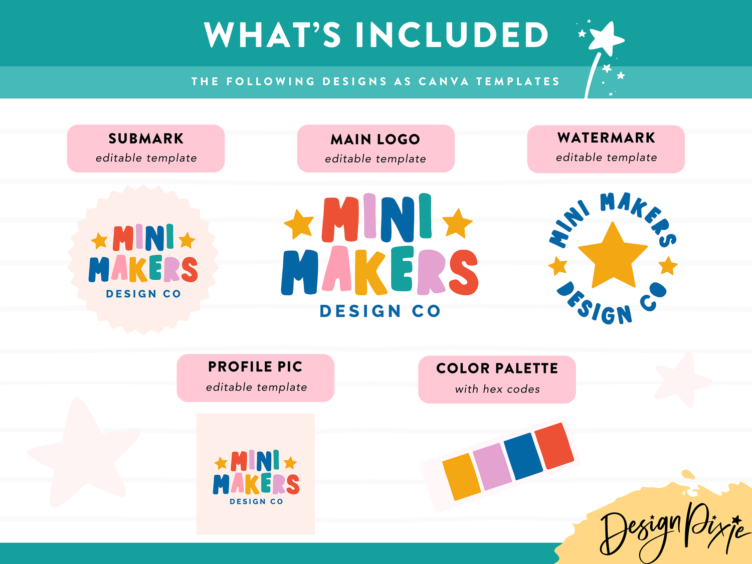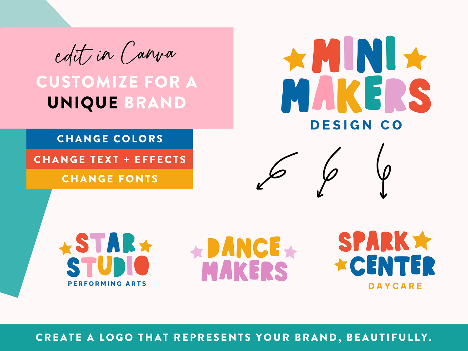 Looking for a logo that’s as bold, bright, and full of energy as your brand? The Mini Makers Logo Template is designed for creative businesses that work with kids - perfect for daycares, education centers, dance schools, performing arts programs, toy brands, and more!