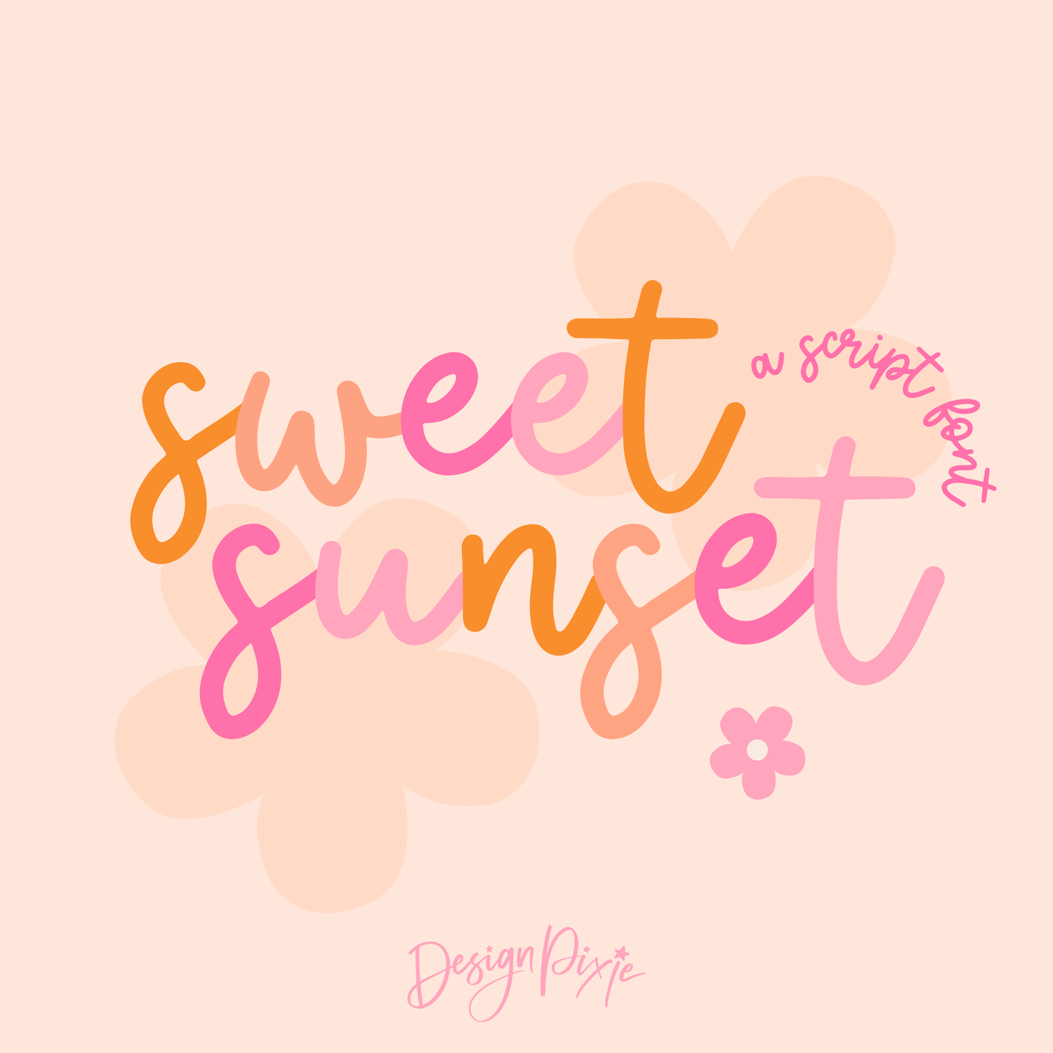 Beyond its visual appeal, Sweet Sunset is designed for versatility and ease of use. Its bold strokes and smooth curves ensure that your message is delivered with clarity, while its playful nature keeps your designs fun and inviting. Whether you’re crafting a logo for a new brand or creating a heartfelt greeting card, Sweet Sunset adds a burst of creativity and warmth to every project, making it a must-have in your playful fonts collection.