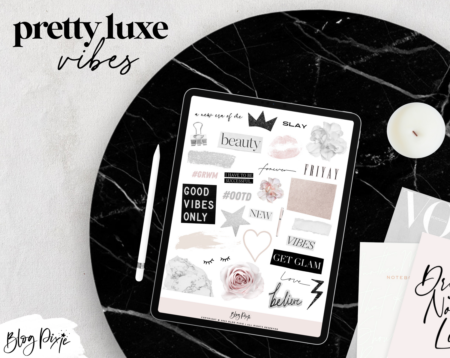 Using digital stickers is an easy way to add inspiration to your digital planner and boost your motivation to have the best year ever. These girly digital sticker sheets by Blog Pixie are pre-cropped and ready to use in a digital planning app, featuring black, blush, white, grey and more.