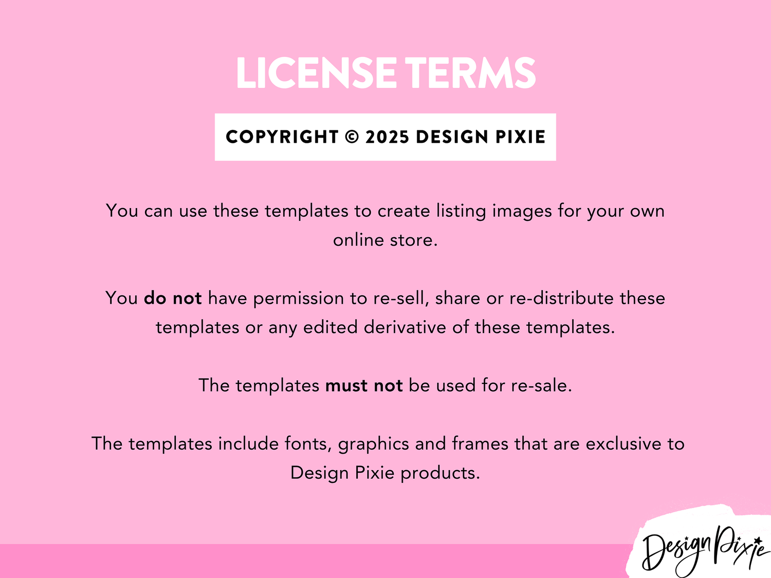 The templates include fonts, graphics and frames that are exclusive to Design Pixie products.