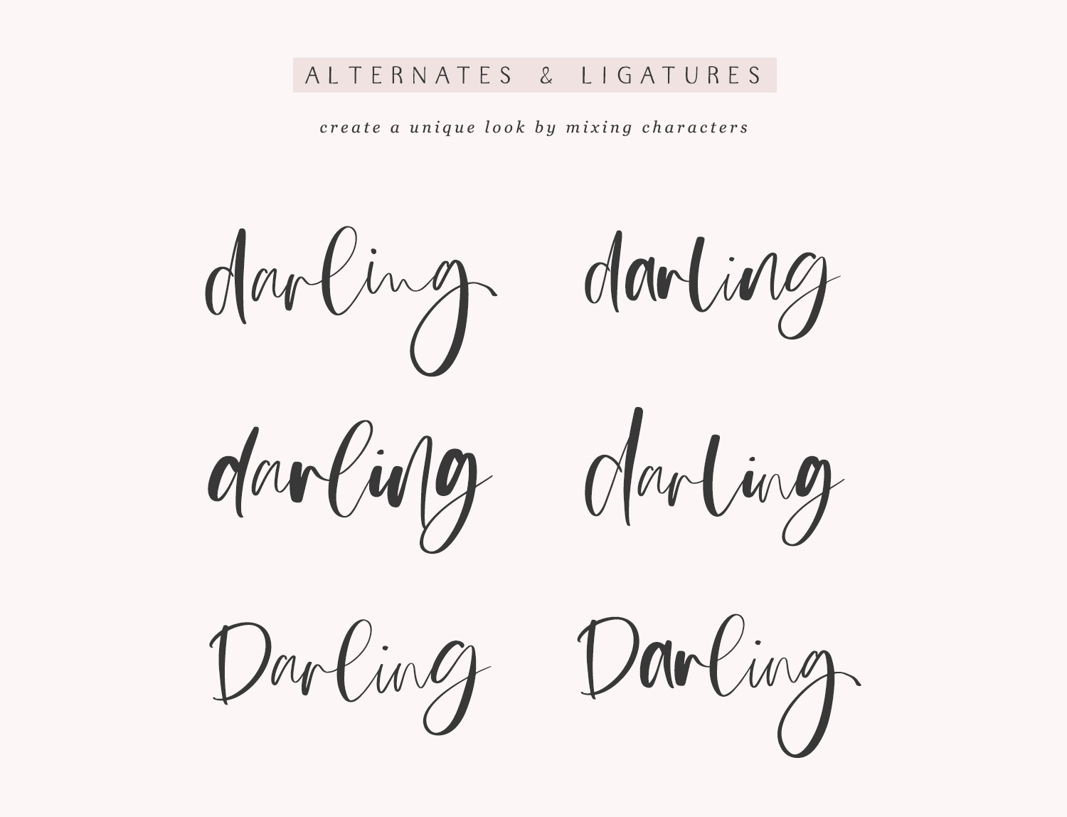 Use Darling script for quotes, invitations, stationery, print design, logos, magazine, eBooks and more.