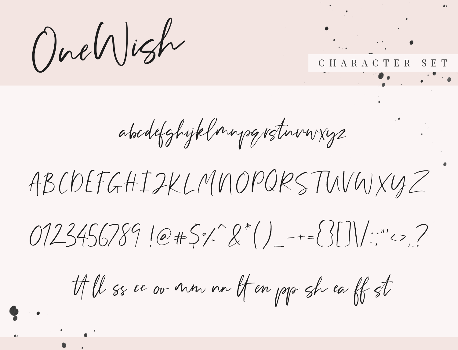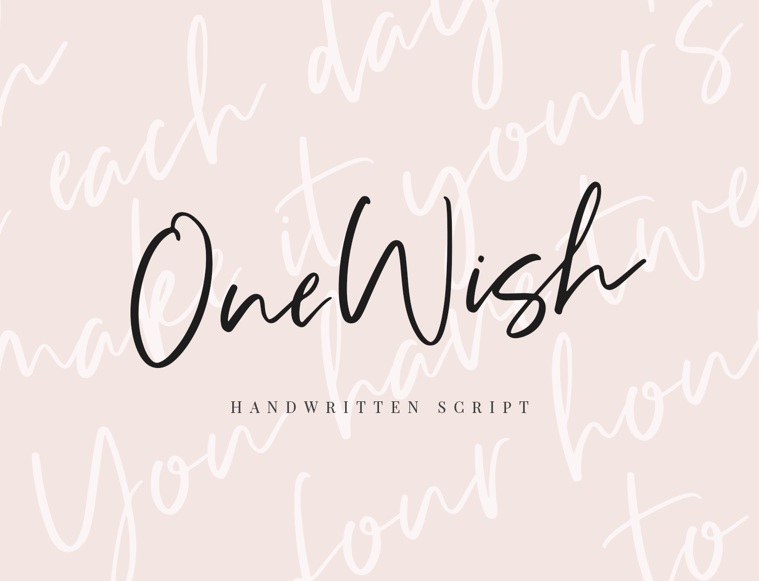 Meet One Wish, a sleek handwritten script font designed to elevate your creative projects. With its modern, effortless flow, One Wish brings a chic, personal touch to everything from logos and branding to social media graphics. Perfect for the trendsetter, this font is ideal for creating standout designs that exude style and sophistication. Whether you’re crafting a bold logo or a captivating quote, One Wish adds that perfect blend of elegance and authenticity.