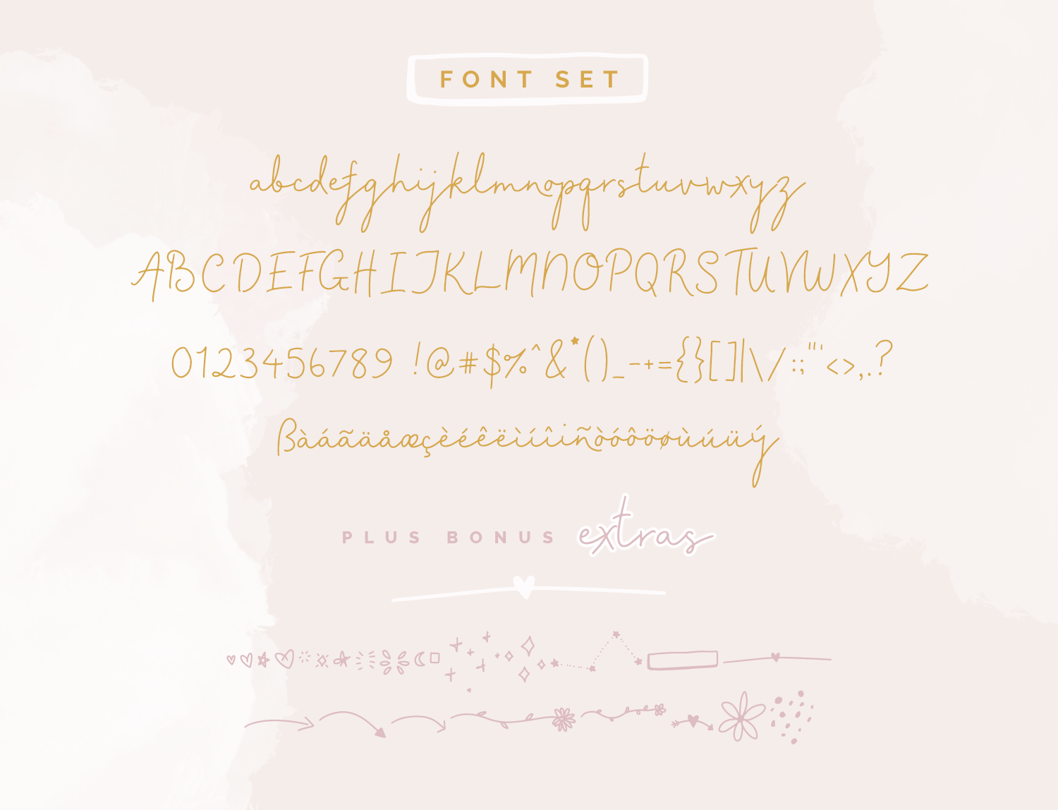 The Extras font includes a selection of clipart to use when typing from lowercase a to z.