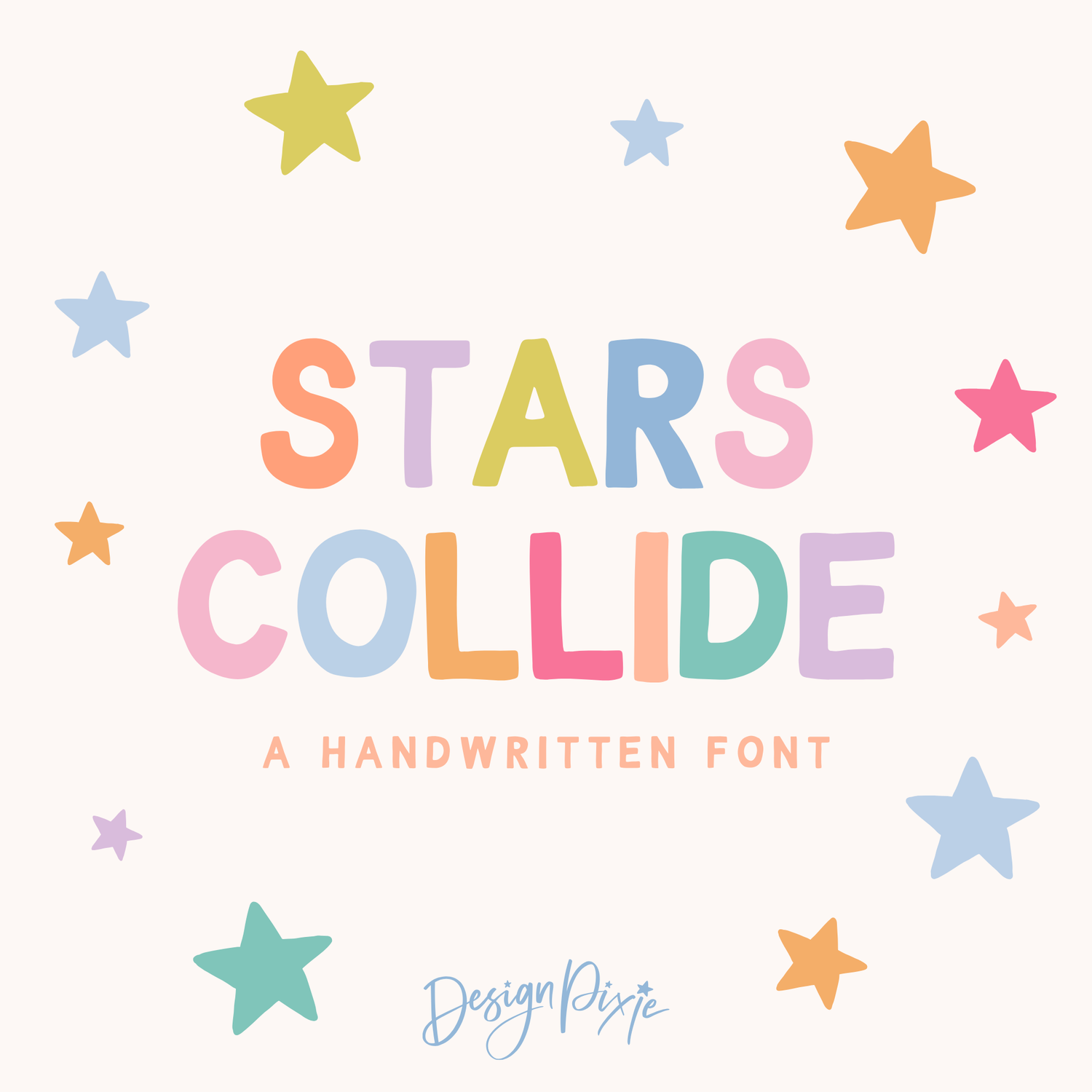 Bring a twinkle to your designs with the Stars Collide font! This cute handwritten font comes in both filled and outlined versions, offering you the flexibility to create a wide range of projects. Whether you're working on Procreate, Cricut, or Canva, Stars Collide adds a whimsical touch to your text, making it perfect for anything from social media posts to DIY crafts.