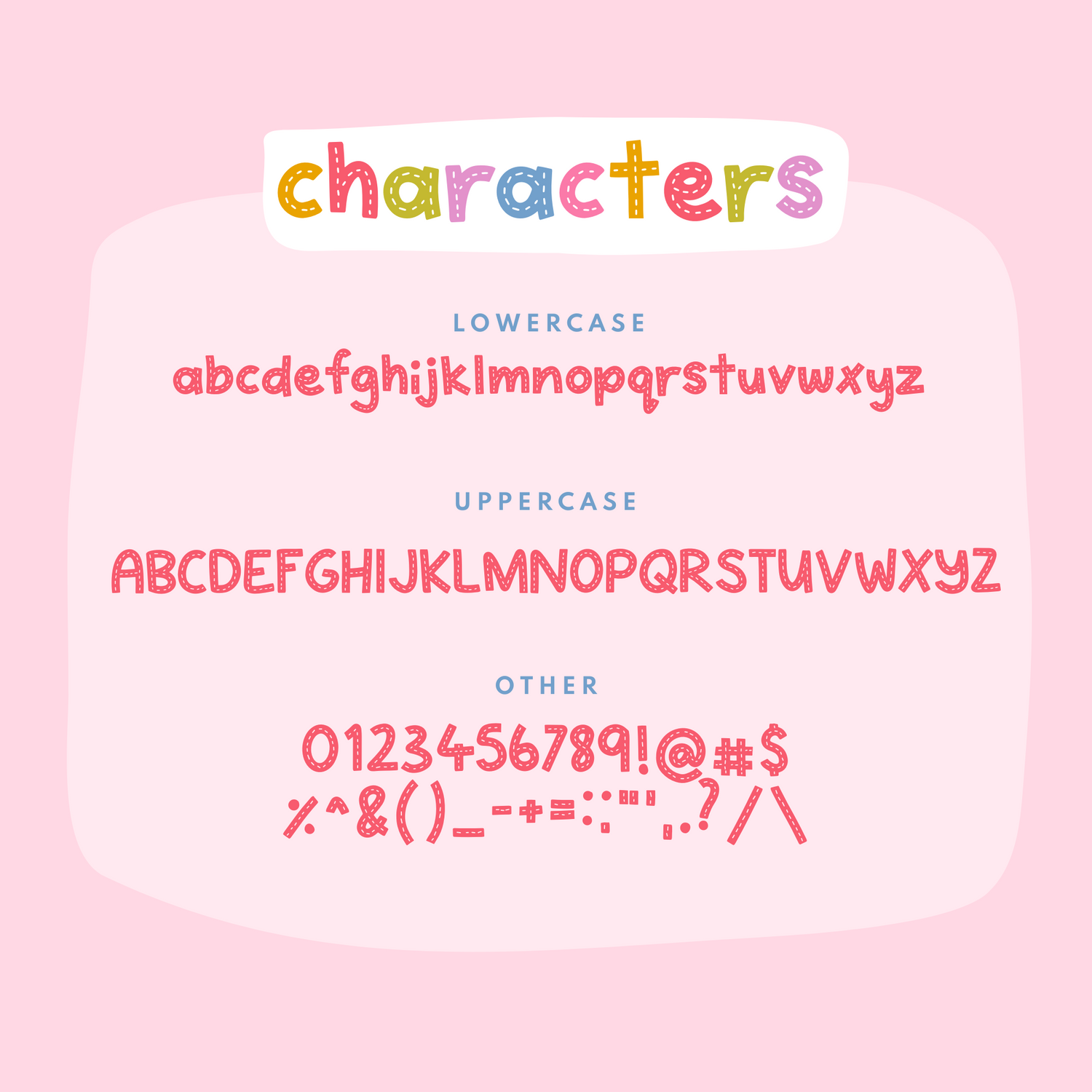Meet Stitch, the charming lettering font that brings a playful stitching pattern to your designs! Perfect for Procreate, iPad, Photoshop, and more, this delightful font adds a touch of whimsy to any project.