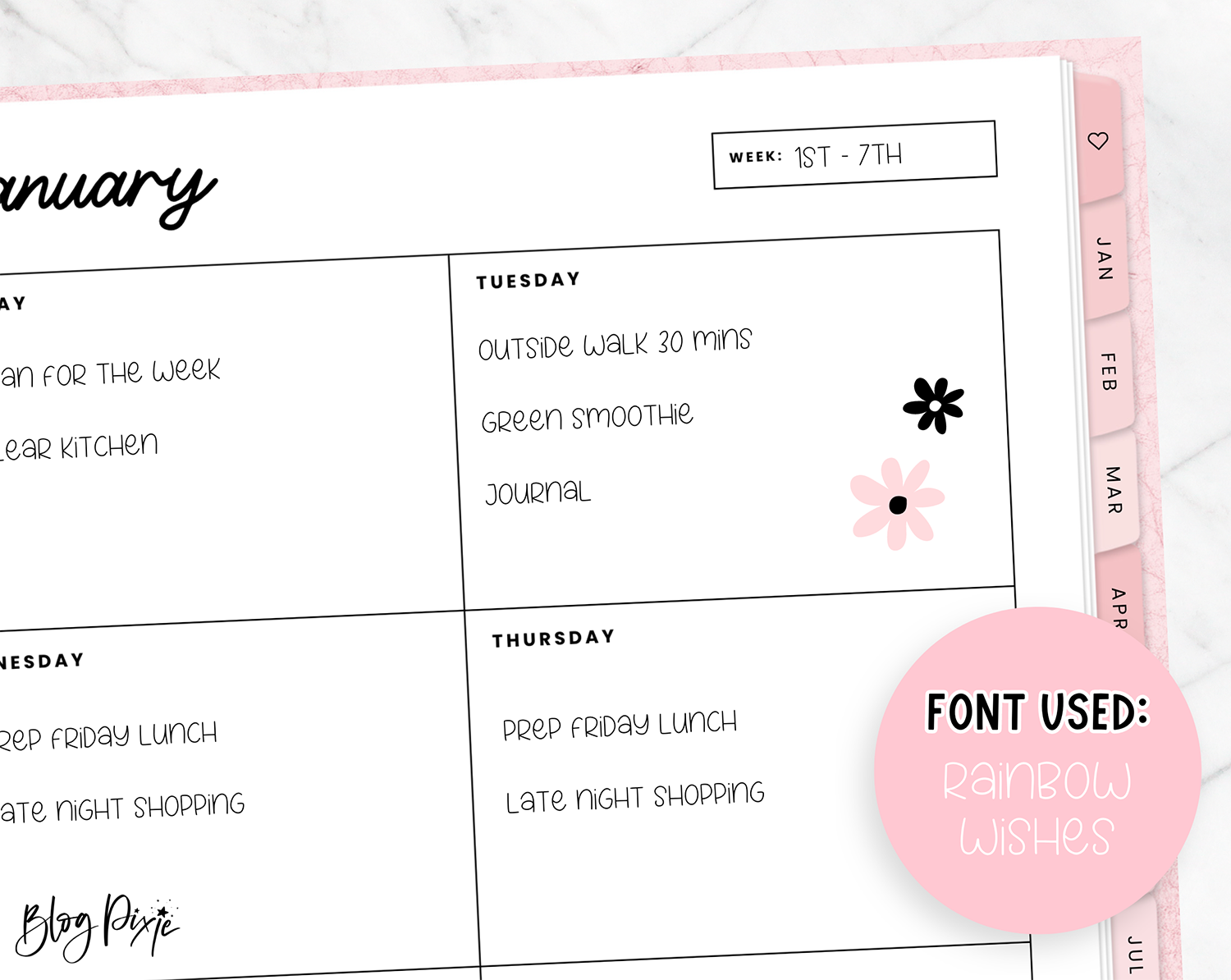 These planner fonts can be used as Goodnotes fonts, Canva Pro fonts, Procreate fonts, Cricut fonts and iPad fonts. You can use them in Adobe software, Design Space, Silhouette studio and more.