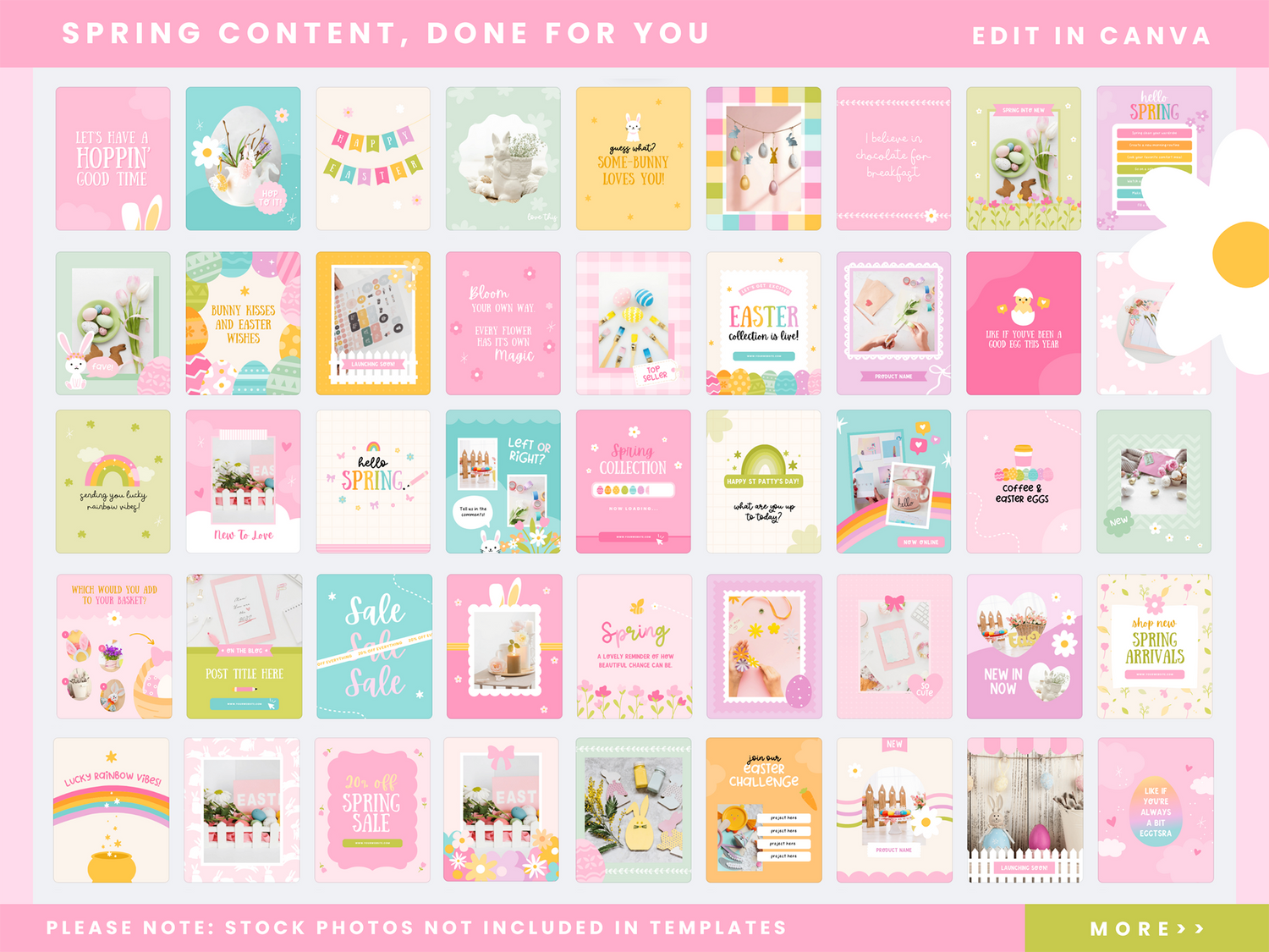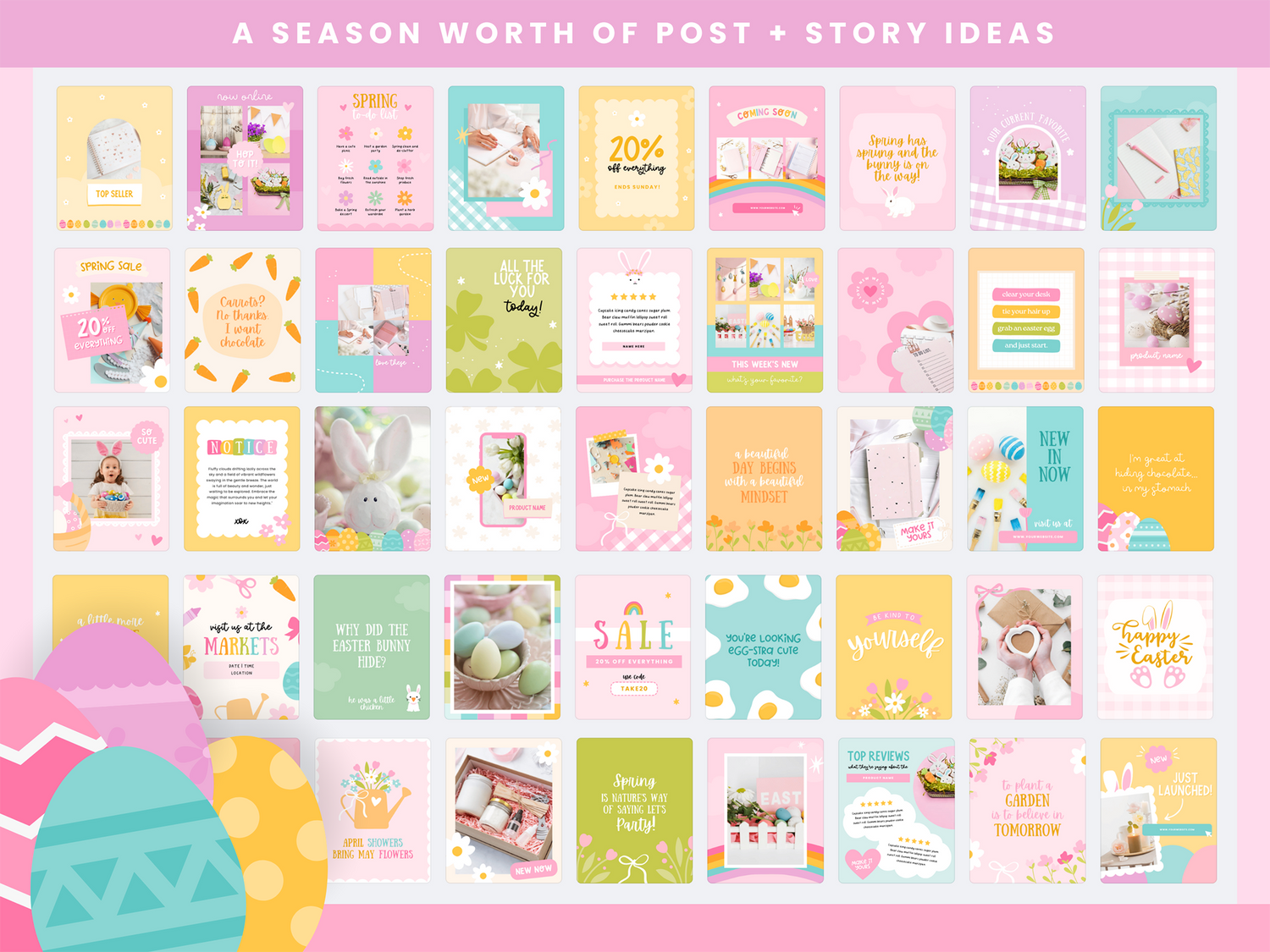 Packed with editable Canva Instagram templates, this social media bundle makes marketing your business effortless and fun. Whether you're celebrating Easter with cute bunny posts, sharing floral Instagram quotes, or promoting your business with seasonal Instagram post ideas, this set has everything you need for a bright, colorful and engaging feed!