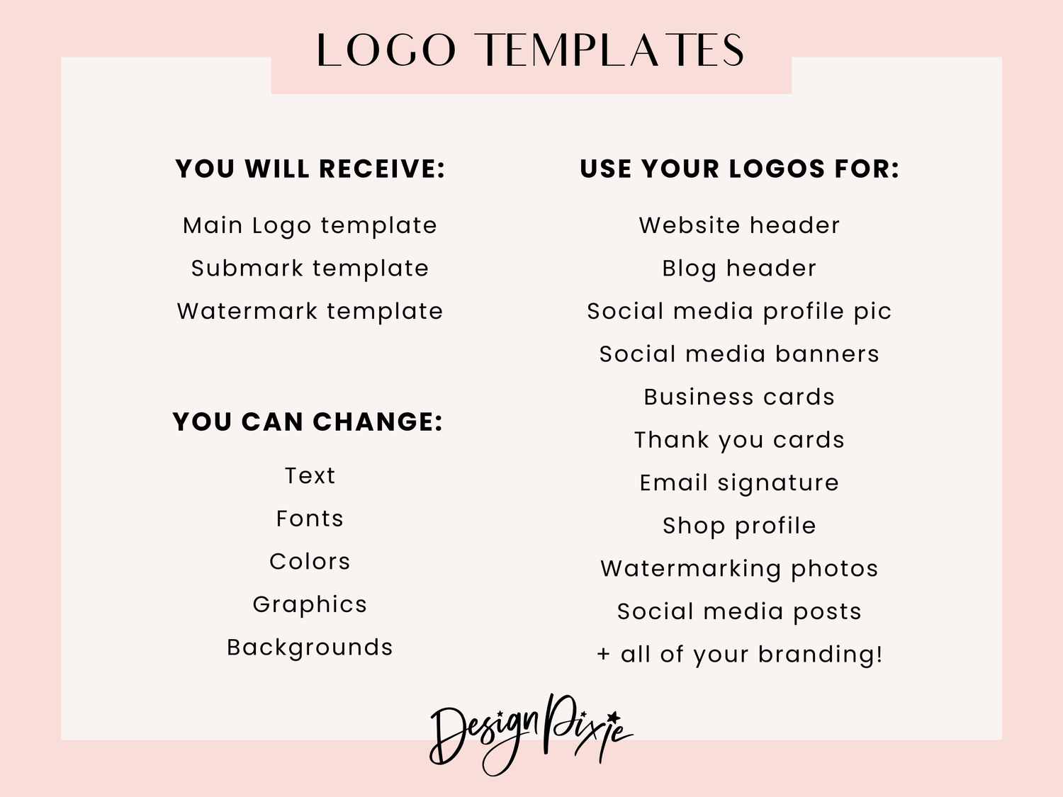 You can use these templates to create your own logo. You must replace the words with your business name before downloading. You can use your new logo for all of your website, branding, social media and marketing.