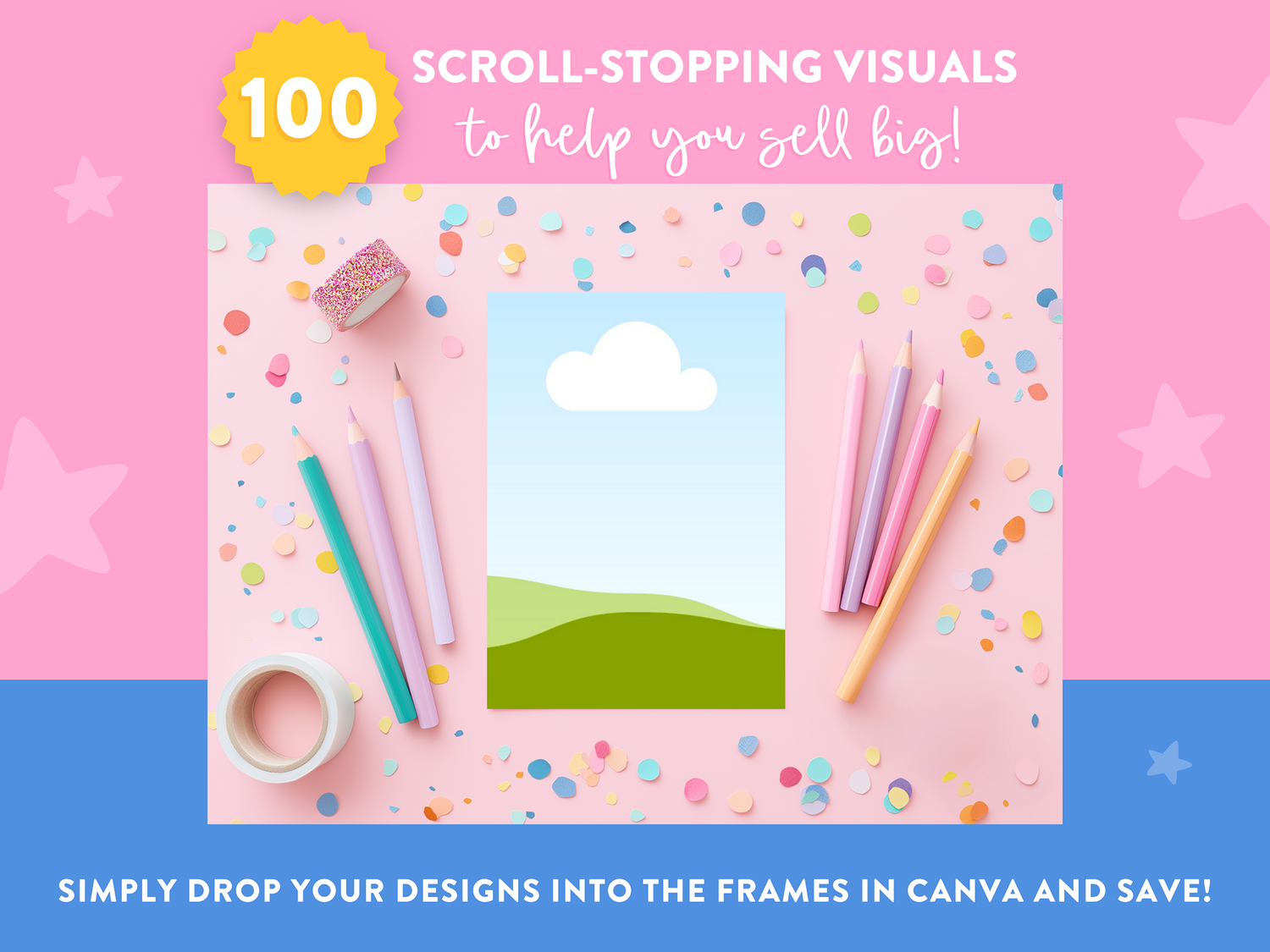 This bundle of bright, colorful paper mockup templates to edit in Canva is designed to help digital product sellers create scroll-stopping listing images in minutes - no Photoshop required.