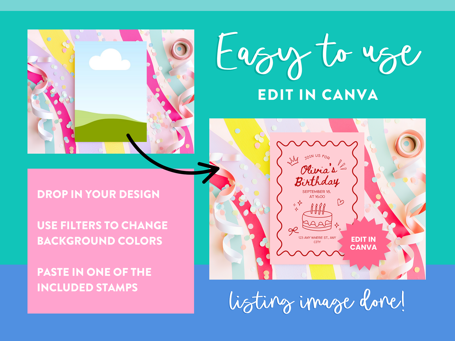 These Canva templates are fully editable - just drop your design into the frame, then customize the layout, colors, or elements to match your brand. They’re a dream for creating professional listing photos.
