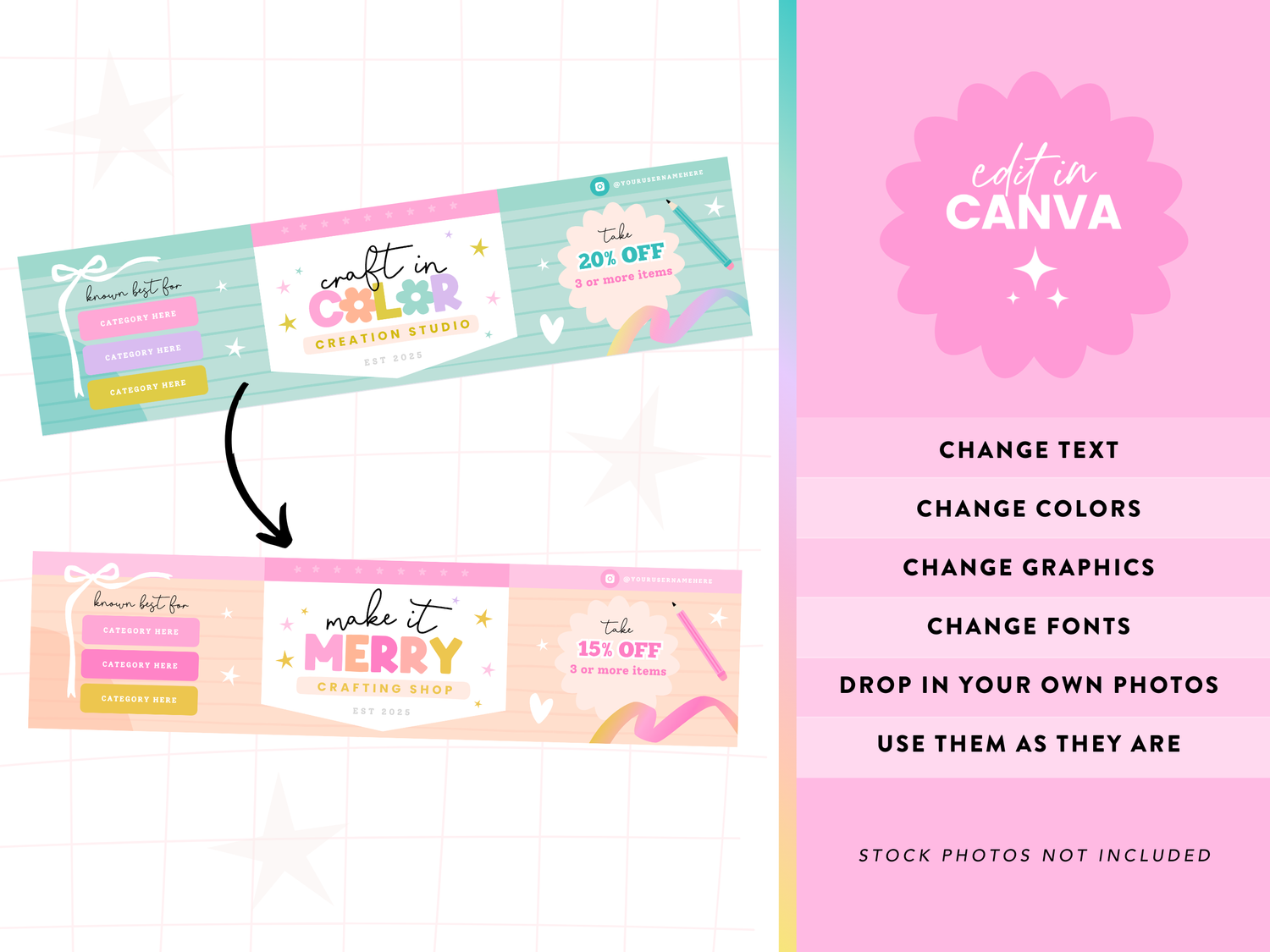 - 6 Main Shop Banner Templates (editable in Canva)