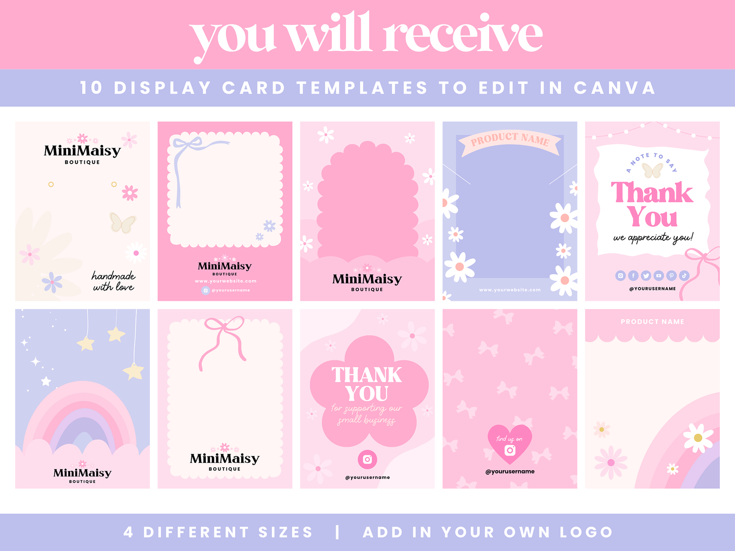 These display card templates help you create beautiful, professional packaging that reflects your brand’s personality. Whether you’re prepping for markets, packaging online orders, or adding a boutique touch to your products, these designs will make your small business stand out.