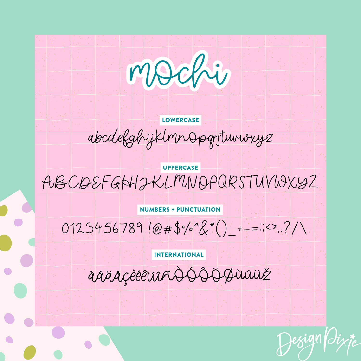 It’s warm, charming and full of character… just like its name. Whether you’re designing for your shop, creating adorable digital products or adding a fun handwritten touch to packaging, Mochi makes every word look cute and irresistible.