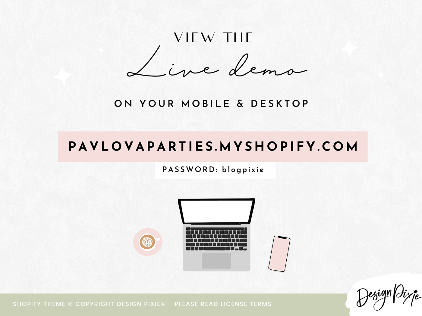 VIEW THE LIVE DEMO: https://pavlovaparties.myshopify.com
