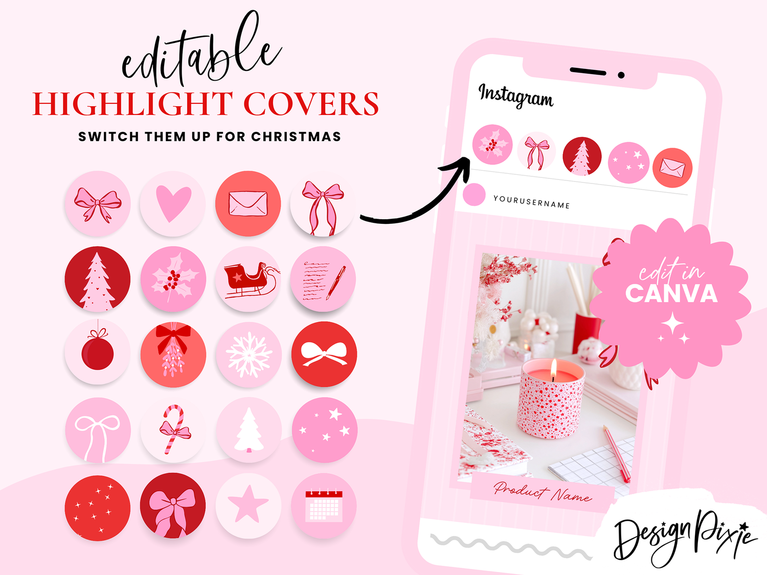 Make your feed sparkle this holiday season with our Pretty Christmas Instagram Content Bundle - designed in a girly, coquette style with soft pinks, festive reds, bows, and pretty Christmas details. Perfect for small business owners, influencers, and creatives who want to stand out with a pretty holiday look.