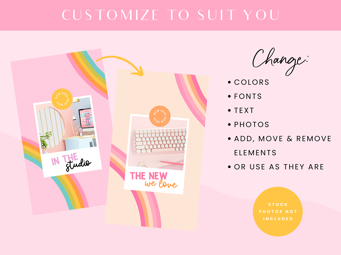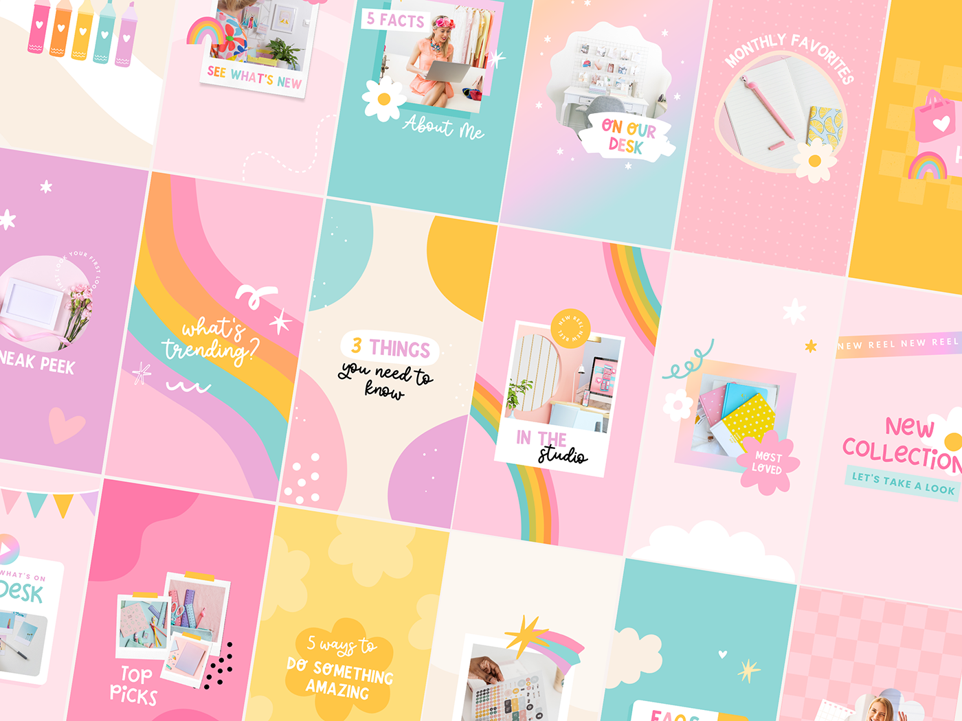 These rainbow social media designs can be used in a variety of different ways, such as Pinterest idea pins and Instagram story templates. Perfect for small business owners who need ideas for Instagram reels.