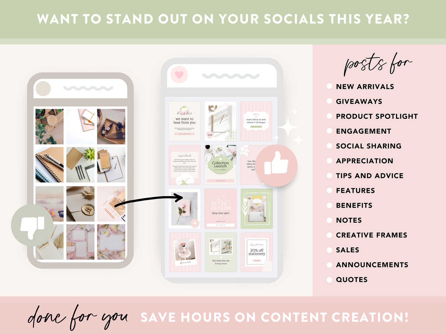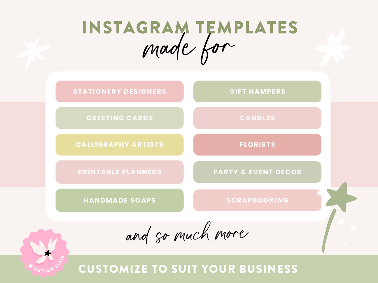 Create a pretty, stylish Instagram feed with our feminine Instagram templates designed for creative entrepreneurs, wedding businesses, stationery brands, and more!