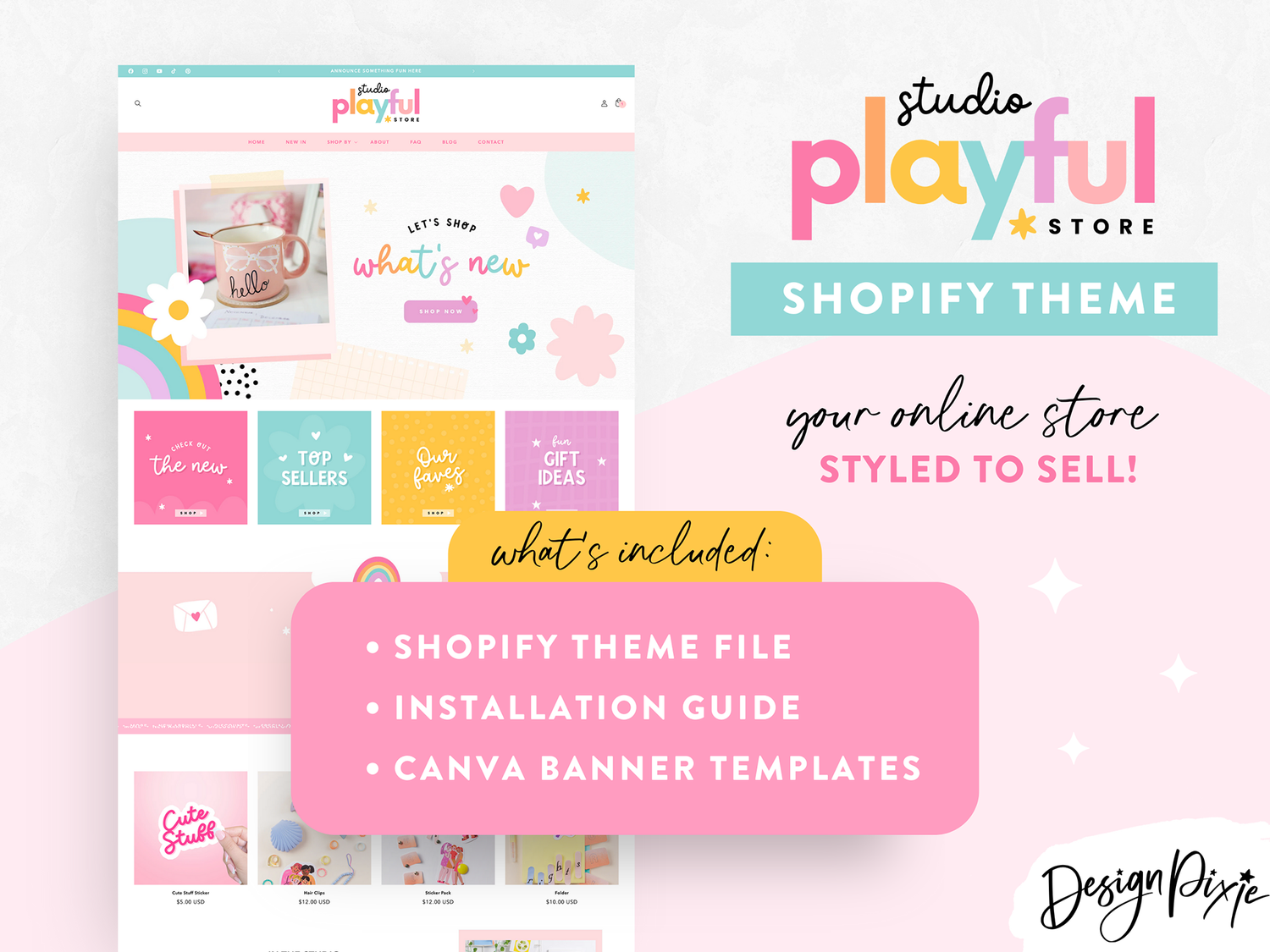 Perfect for showcasing digital products, printables, stickers, planners, and more, this theme adds a splash of rainbow magic to everything you sell!