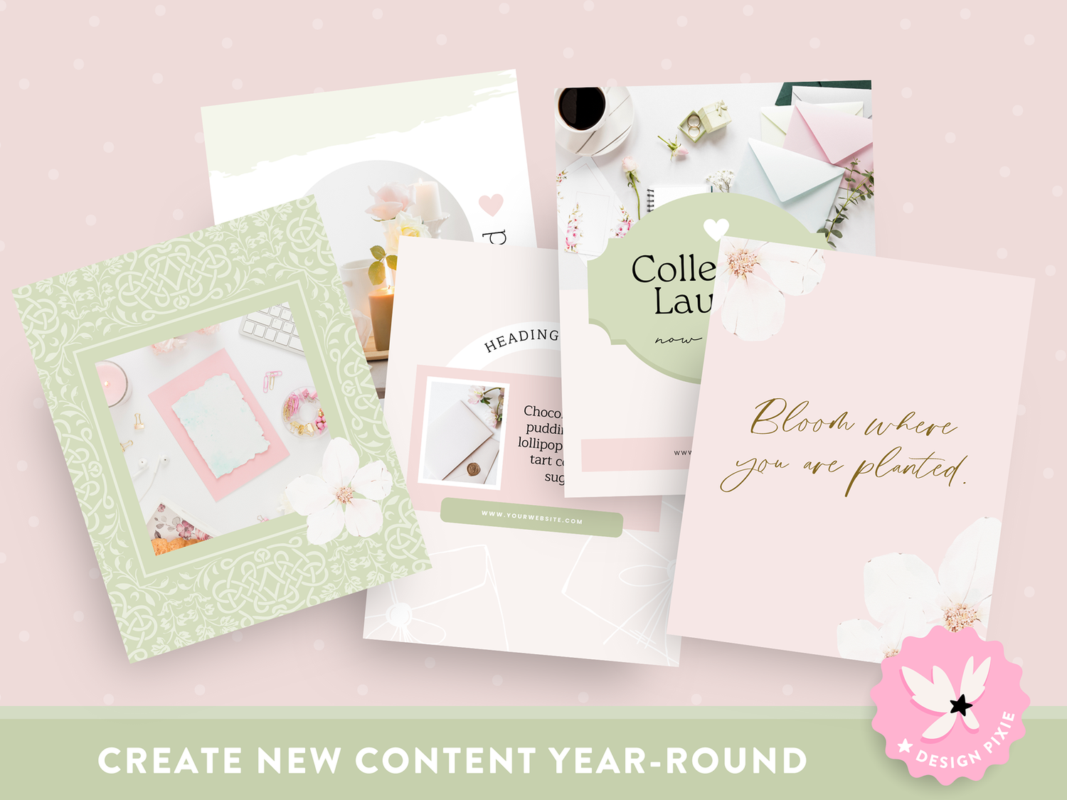 Featuring delicate patterns, ornate decorative borders, watercolor flowers, and elegant line art, these templates bring a soft, romantic touch to your social media. The soft pastel palette of blush pink, sage green, and neutrals adds a timeless, elegant feel, while the hand-drawn line art and floral details create a look that’s effortlessly chic.