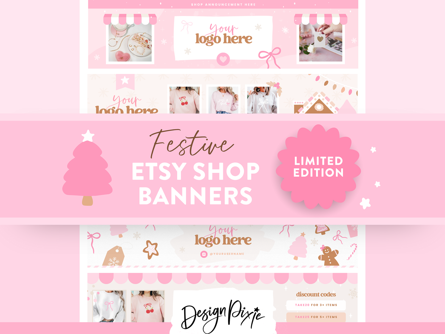 Get your Etsy shop holiday-ready with these delightful pink Christmas banners and make this season as sweet as can be!