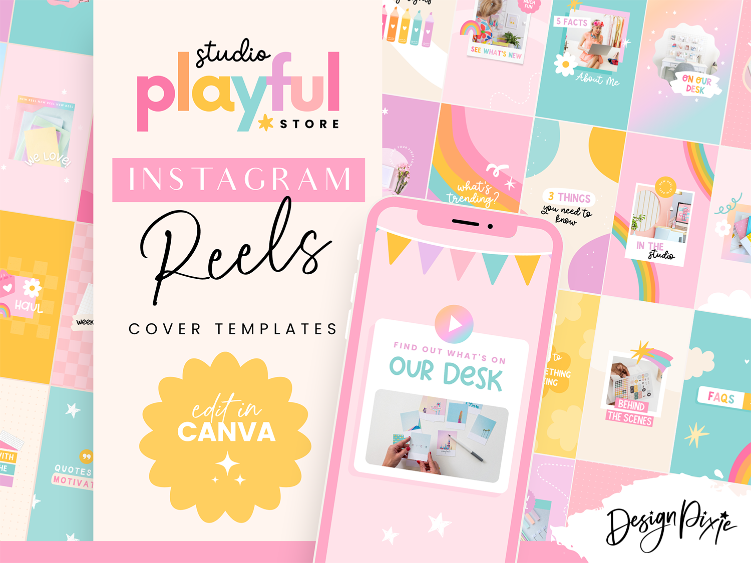 Playful Instagram Reel Templates to edit in Canva in fun rainbow colors as part of the Playful branding collection. Get creative with your Instagram Reels and create eye-catching covers for your videos using these Canva templates for Instagram.