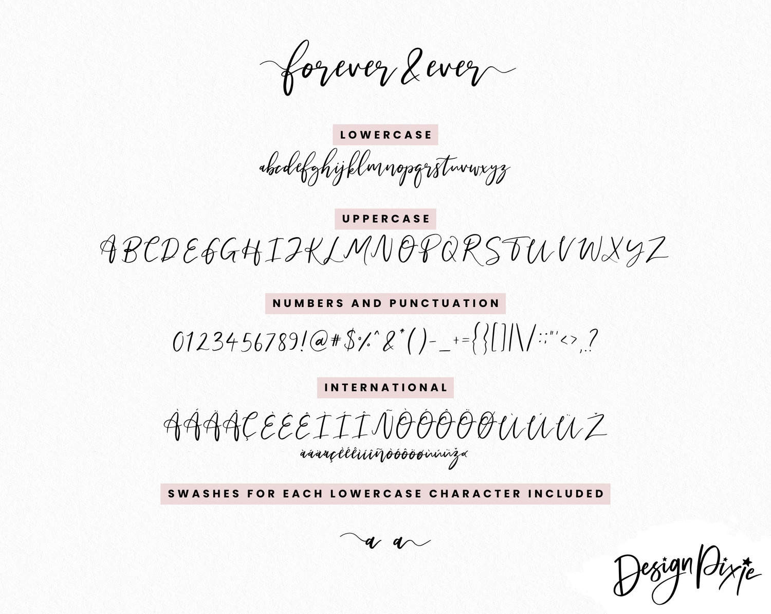 Perfect for logos, branding, authors, book covers, invitations, stationery, and anything that deserves a little extra charm. Whether you keep it simple or add the swooping swashes, Forever And Ever lets your words dance beautifully across the page.