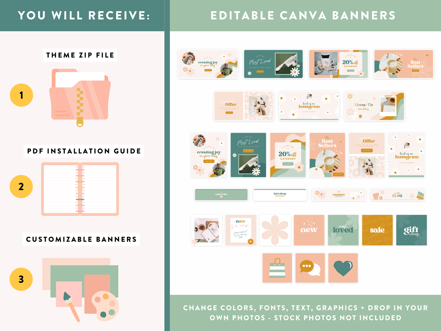 - PDF with links to the Canva Templates to edit your Shopify Banners
