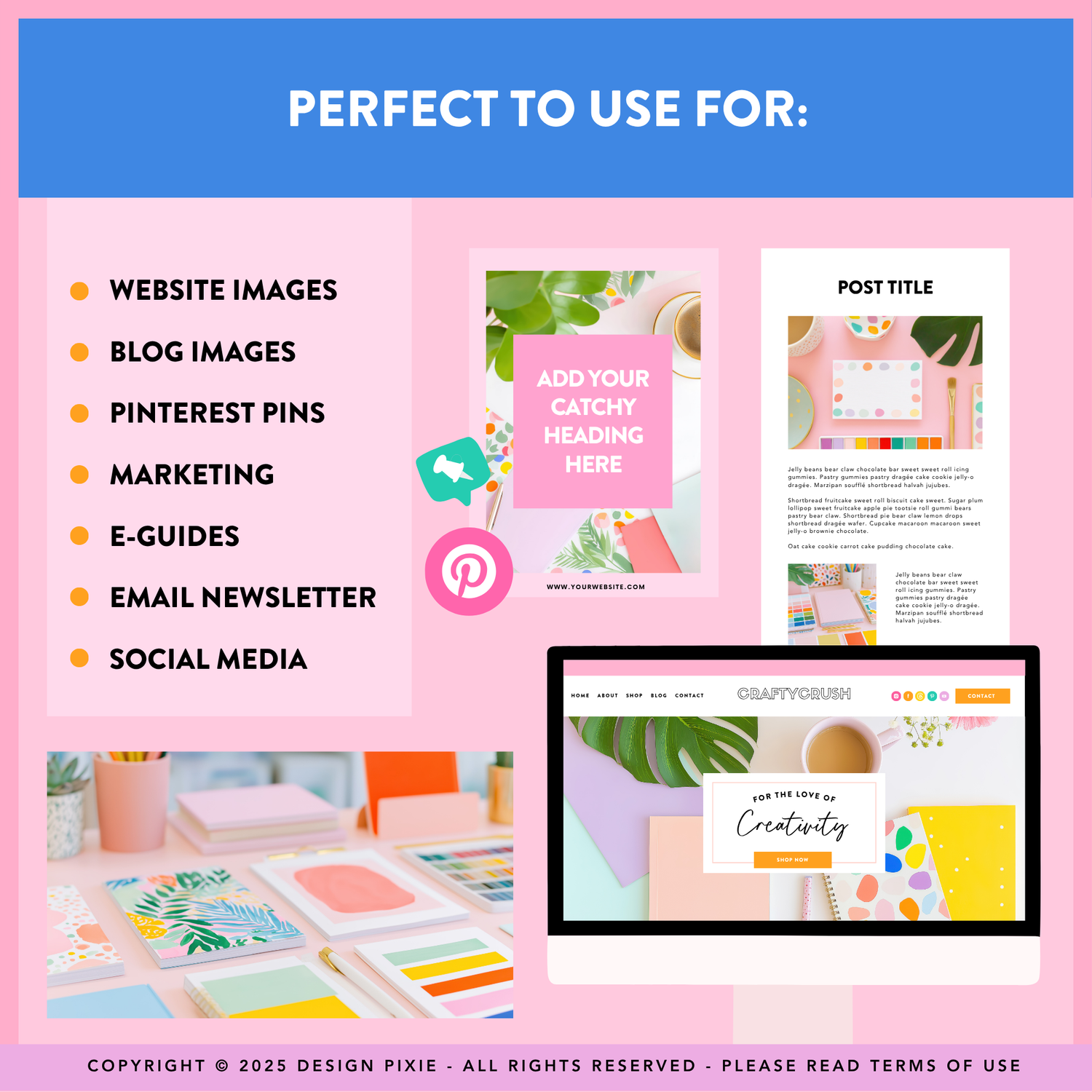 Perfect for brightening up your Blog and Instagram, or adding flair to your website, these photos are a dream for makers, artists, content creators, and small biz owners who want their visuals to feel fun, fresh, and totally unique.