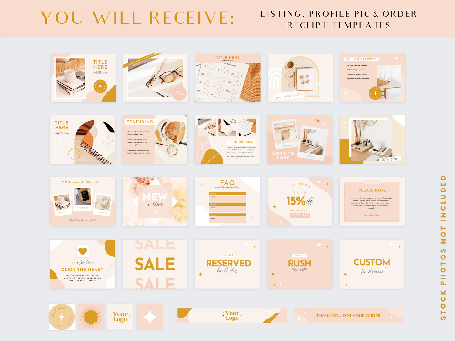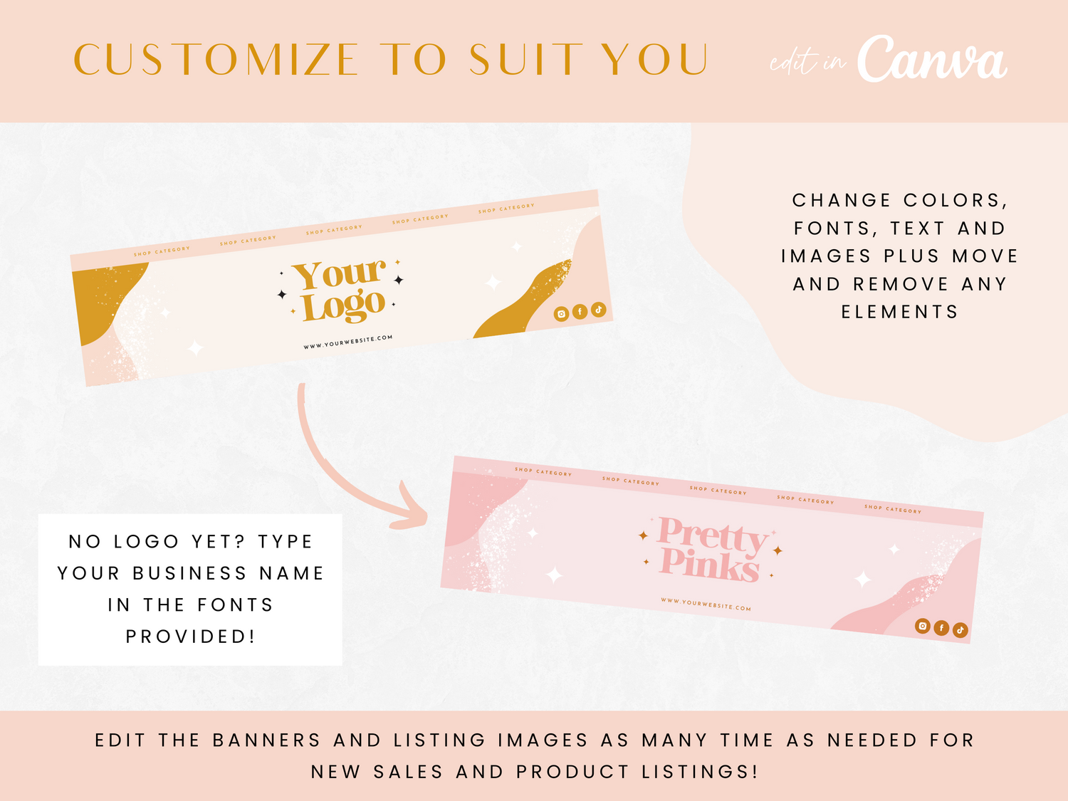 Use each template multiple times by changing the text, images and colors! You’ll never run out of styled banners and listing images.