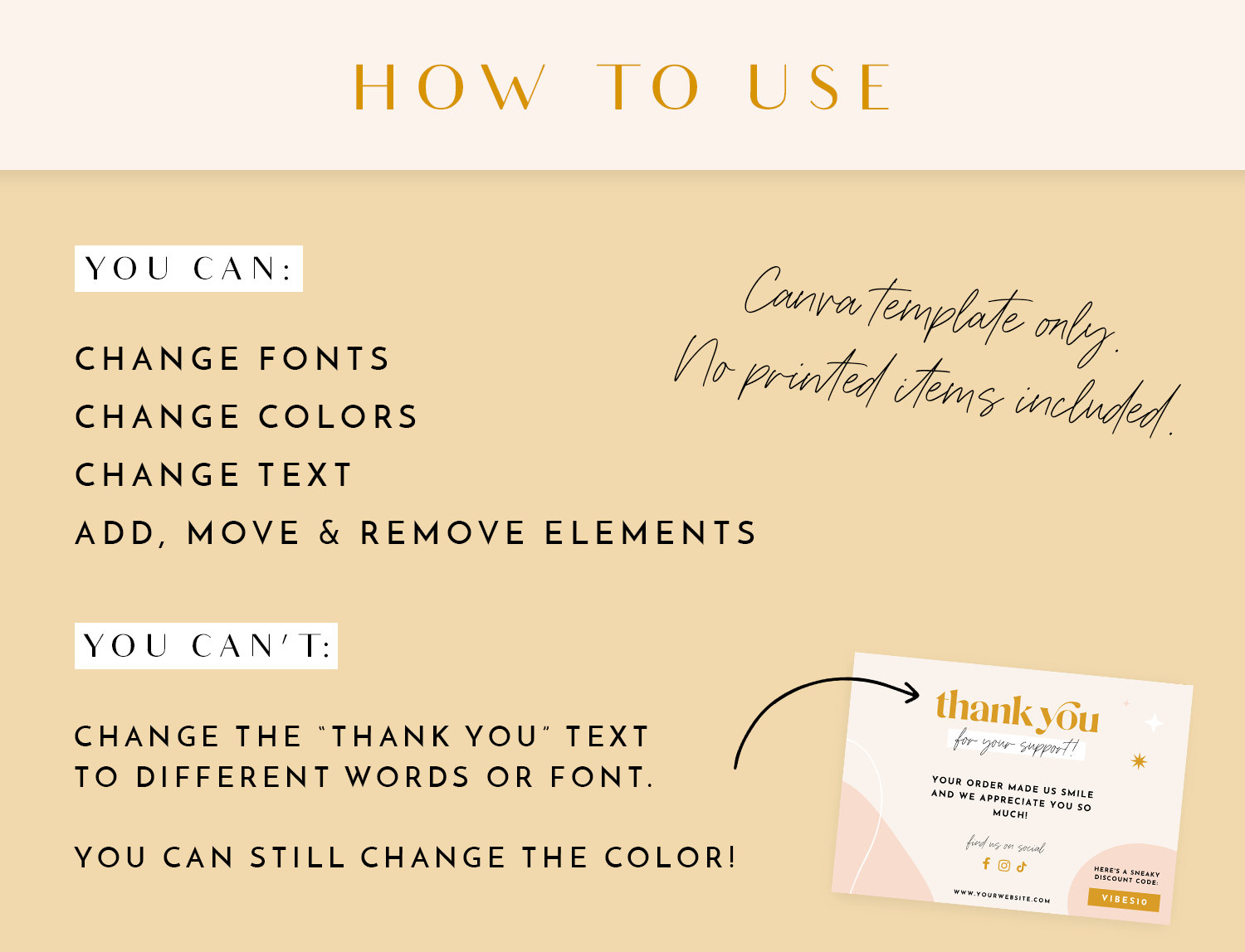 Thank You Cards design for small business. This thank you card template can be edited in Canva. Brand your small business with cute, boho Thank You cards that you can print and send out with orders.
