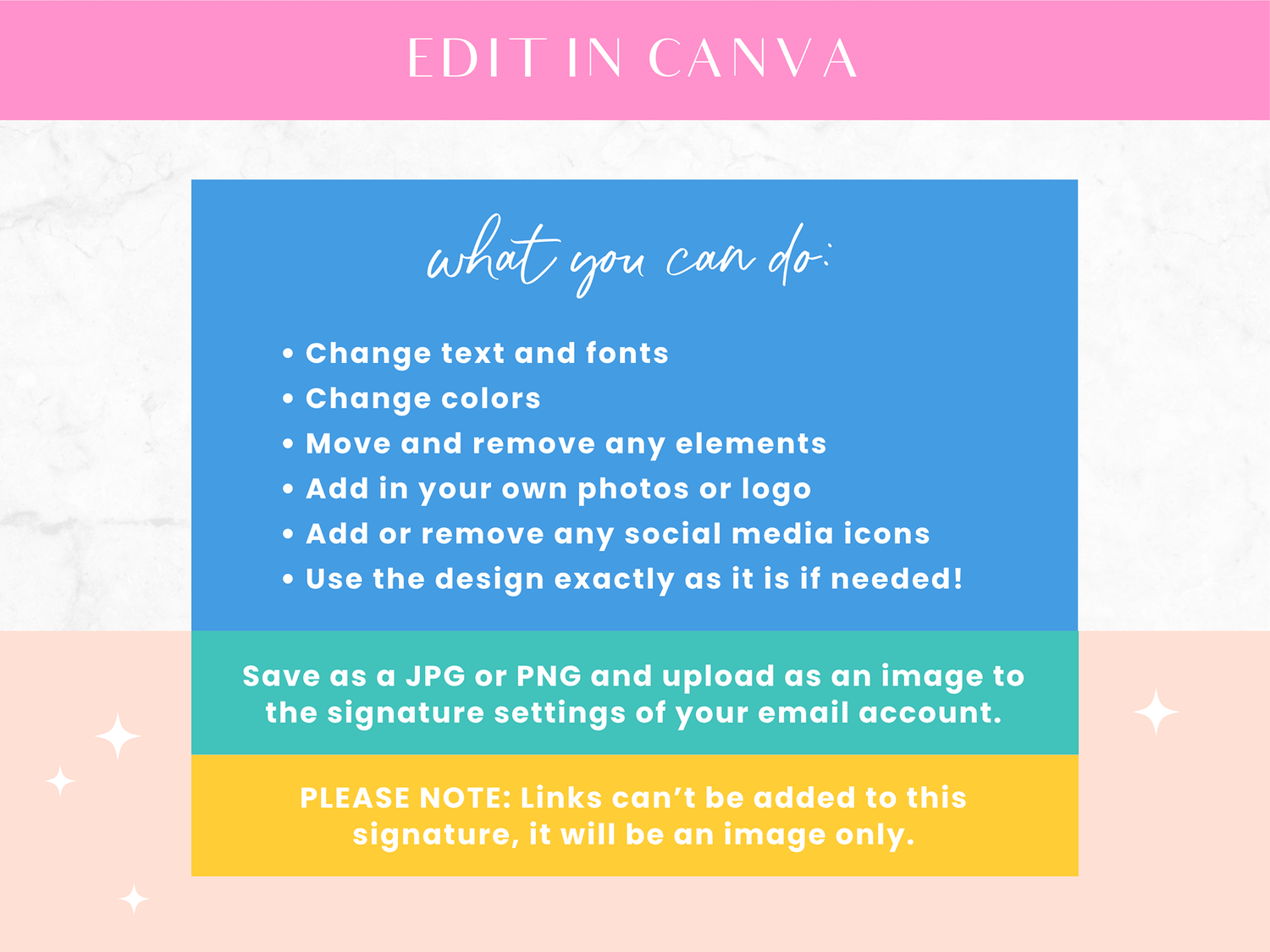 Once edited, simply save your design as a JPG or PNG image, then upload to the signature section of your email account.