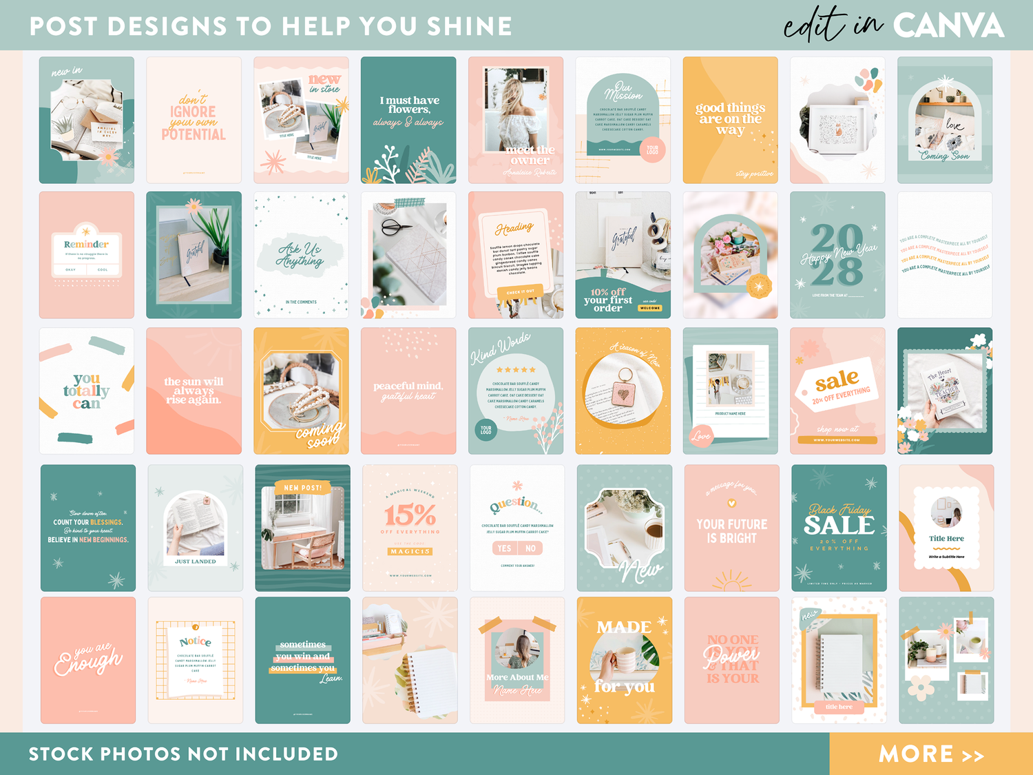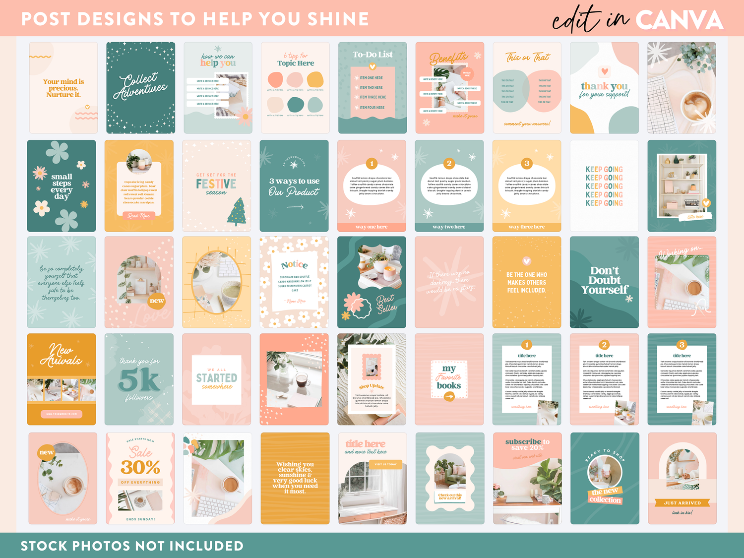 Instagram Post Templates for Canva in a bright, colorful style as part of the Enchanting collection. Get creative with your Instagram posts and create eye-catching images and quotes using these Canva templates for Instagram. Perfect for fashion, beauty, lifestyle, coach, entrepreneur or small business Instagram pages!