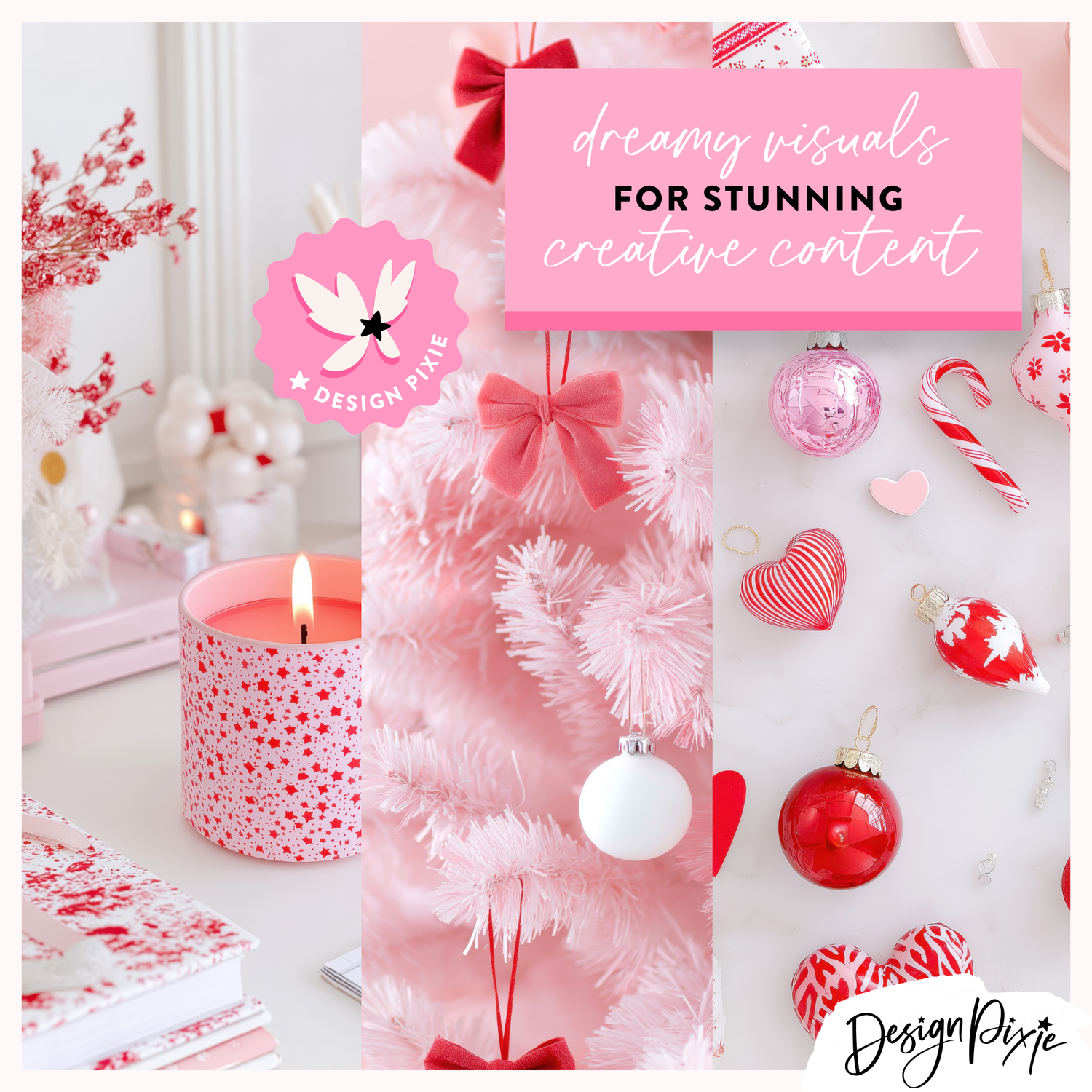 Bring festive magic to your brand this holiday season with our Pink Christmas Styled Stock Photos! This dreamy collection is packed with pretty pink and red Christmas décor, bows, fairy lights, and even pink Christmas trees for the ultimate coquette-inspired holiday aesthetic. Perfect for creative entrepreneurs, small business owners, and content creators who want their holiday visuals to stand out.